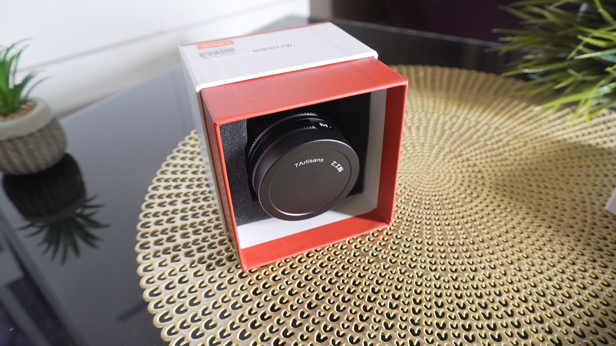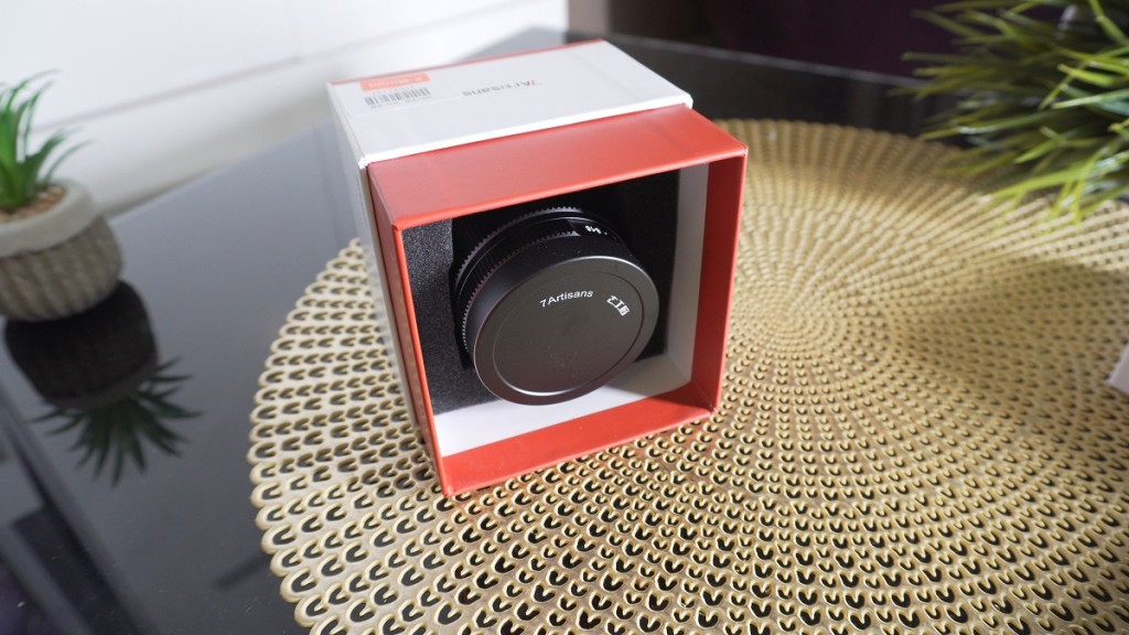Tak wygląda obiektyw od razu po wyjęciu i trzeba mu przyznać, ze jest zrobiony i spasowany fenomenalnie. Wszystko dlatego ze całość to głownie metal, a co za tym idzie i waga. Az 369g to jak na te wymiary ciężkie szkło, ale mi to nie przeszkadza, a nawet pasuje. Super ze 7Artisans ma dwa dekielki, a na pochwale zasługuje przedni bo w wewnątrz jest pokryty taką ala alkantarą. Kapitalnie przylega do samego obiektywu i nie ma opcji nawet pod wpływem machania jak opętany by odleciał. Dolny dekielek działa na zatrzaski i miło, ze producent zrobił swój produkt w wersji z natywnym mocowaniem Sony E, Fujifilm X, Canon EOS M, Z, lub Mikro Cztery Trzecie, więc nie będą wam potrzebne żadne przejściówki.