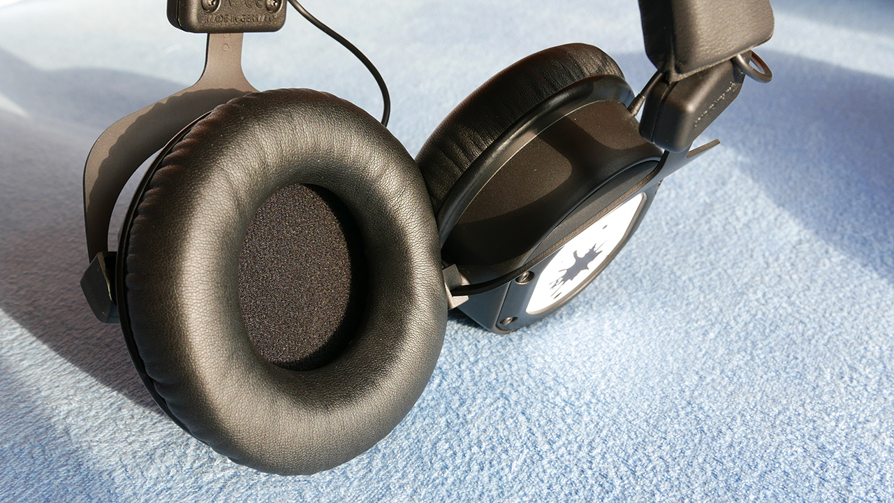 Producent rowniez kilkukrotnie wspomina na pudełku, że słuchawki wyprodukowano w Niemczech z najlepszych komponentów no i rzeczywiście sprzęt prezentuje się bardzo solidnie, skóropodobny materiał jest bardzo miękki i przyjemny w dotyku. Obszerne poduszki doskonale okalają ucho a dobrze wyściełany pałąk zapewnia duży komfort. Dość spory jest za to ucisk na głowę, ale duże poduszki bardzo dobrze amortyzują ta siłę i nawet po calodniowym sluchaniu czy graniu nie czujemy iz mielismy sluchawki na glowie.