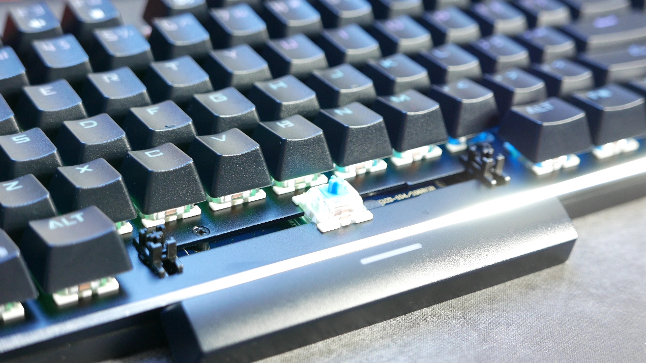 Mechanik nasz wyposazony jest i dostepny jedynie w wersji z niebieskimi przelacznikami Outemu ktore sa oczywiscie klonami niebieskich czery mx’ow. Wedlug informacji ze strony producenta ich zywotnosci to blisko 50 milionow uderzen, wie jest na prawde dobrze. Przyjelo sie ze przyciski jak przystalo na swoja konstrukcje sa najlepszym wyborem do pisania, bowiem w połowie skoku wyczuwalny jest dodatkowy opór któremu towarzyszy staromodne, przyjemne dla ucha kliknięcie.