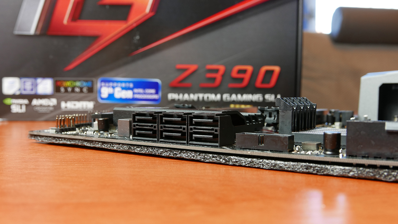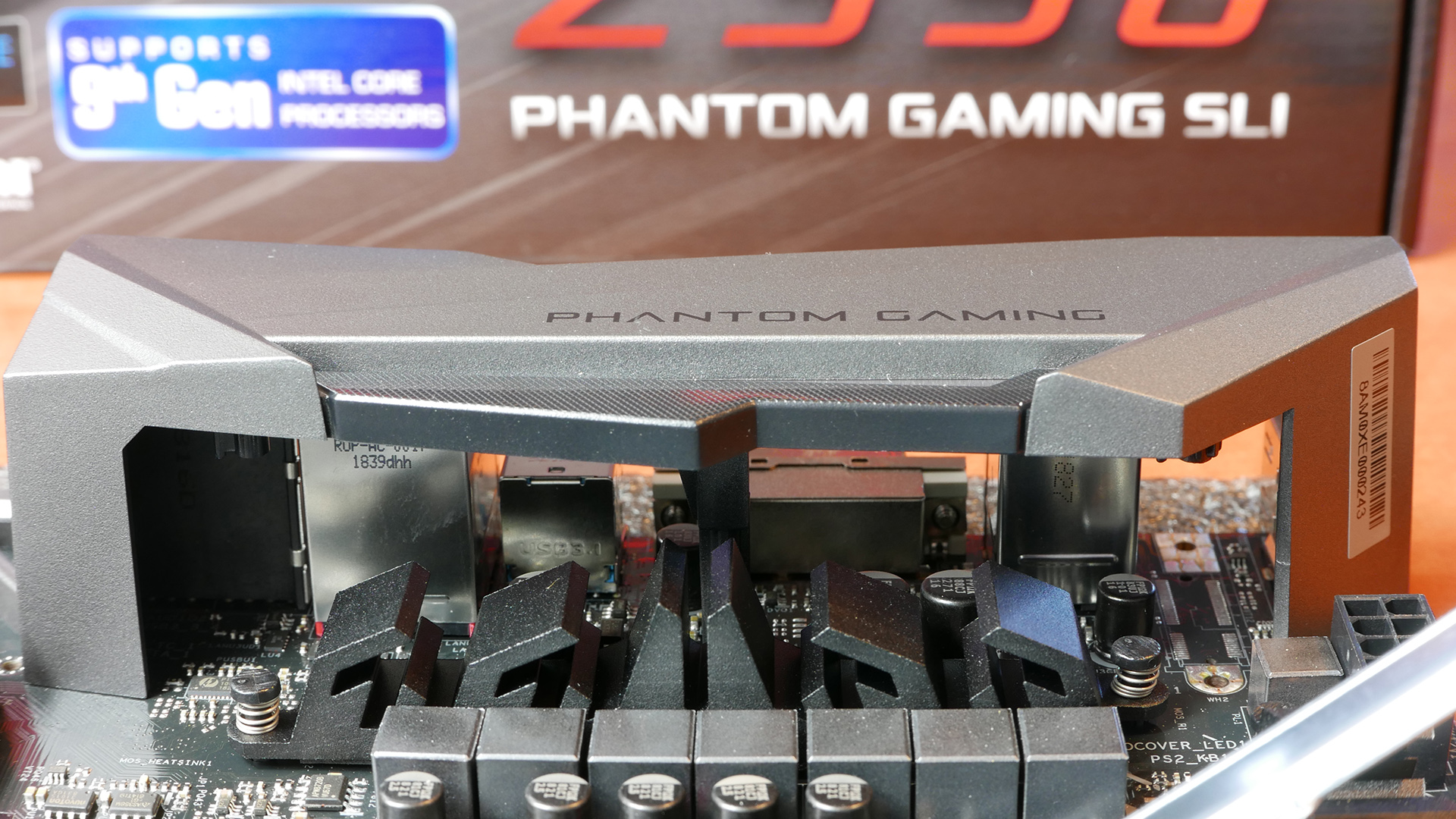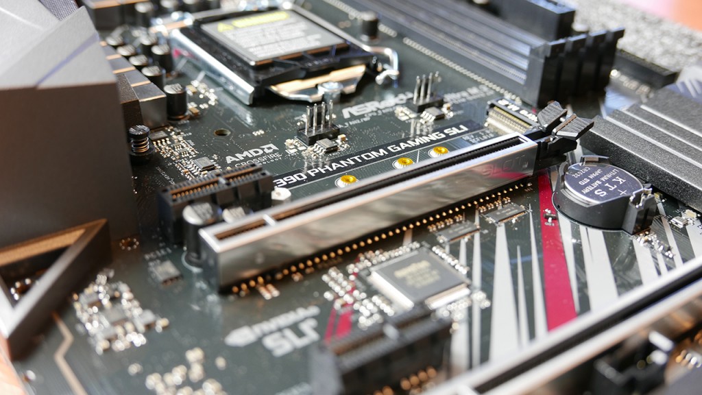 W końcu doszliśmy do tylnego I / O, który jest ładnie zabezpieczony plastikiem z napisaem u góry „Phantom Gaming”. W przeciwieństwie do wyższych modeli z serii Phantom Gaming, ta sekcja I / O nie ma oświetlenia RGB. Jakie mamy tam wejścia? Od lewej do prawej: jest wyjście HDMI, port PS / 2, dwa porty USB 3.1 gen 1, DVI, dwa porty USB 3.1 gen 2 (1x Type-A, 1x Type- C), Ethernet, dwa dodatkowe porty USB 3.1 gen 1 i połączenia audio. Seria Phantom Gaming jest standardowo wyposażona w 2.5 Gigabitową sieć LAN dostarczaną przez Realtek Dragon RTL8125AG. I tak obczailiśmy całą płytę – czas zamontować w niej procesor i zobaczyć jak się sprawuje.