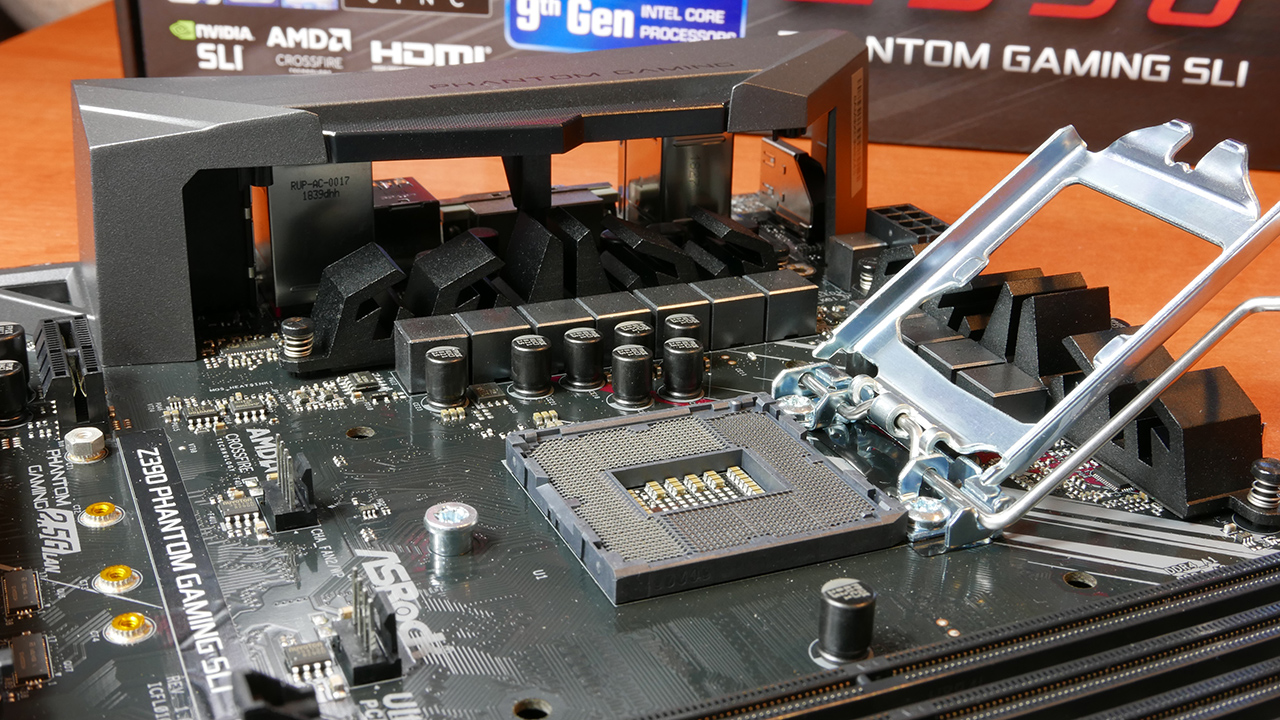 ASRock utrzymuje ten sam typ kolorów i brandingu, który stosowali na kartach graficznych Phantom Gaming. Z przodu pudełka znajduje się duże logo Phantom Gaming + na dole dokładny model Z390 Phantom Gaming SLI. Po odwróceniu pudełka otrzymujemy obszerne detale techniczne. Wyjmując wszystko z pudełka mamy naszą osłonę I / O, 2 kable SATA, mostek SLI HB, śruby do slotów M.2, podręcznik do konfiguracji oprogramowania, przewodnik szybkiej instalacji, podręcznik użytkownika, płyta CD z oprogramowaniem, a nawet pocztówkę którą możemy wysłać. Seria płyt głównych Phantom Gaming ASRock ma czarną płytkę z srebrnymi i czerwonymi akcentami. Podoba mi się ogólny wygląd co jest oczywiście kwestia indywidualną, sama płyta to oczywiście pełny ATX. Zaczynając od górnej części płyty głównej mamy gniazdo LGA1151. Płyty Z390 obsługują zarówno procesory Intel Core 8, jak i 9 generacji. ASRock wyposażył tę płytkę w 10-fazowy układ zasilania, który wykorzystuje wysokiej klasy kondensatory o przepustowości 45A. Komponenty zasilające są pokryte dwoma radiatorami, które nie są zbyt duże, ale powinny powinny spokojnie wystarczyć.
