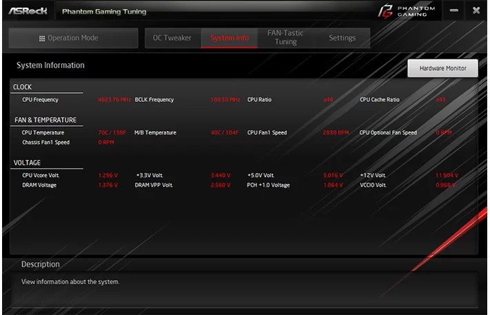 Jeśli chodzi o oprogramowanie dla tej płyty głównej ASRock wszystko nam ułatwia bo pomocą oprogramowania Live Update & App Shop można szybko zobaczyć listę dostępnych sterowników cz programów , a te szybko możemy pobrać przez samą apkę. Główne oprogramowanie natomiast to „Phatom Gaming Tuning”. Na stronie głównej możemy wybrać swój tryb pracy spośród Performance Mod, Standard Mode i Power Saving. Następna zakładka to OC Tweaker. Tutaj możesz w pełni dostosować swój system, zmieniając stosunek CPU, BCLK, napięcia, itp. Karta Informacje o systemie jest następna i podaje nam bieżące informacje na temat systemu. W FAN-Tastic Tuning można dostroić wszystkie wiatraczki podłączone do płyty głównej. Drugim oprogramowaniem które możemy ściągnąć dotyczy RGB ASRocka czyli „ASRock’s Polychrome RGB”. Tutaj można ustawić kolory na wbudowanych diodach LED RGB pod radiatorem PCH, a także trzy innych częściach płyty głównej. Tutaj musze jeszcze zaznaczyć, że oświetlenie pod radiatorem PCH jest całkiem fajnie, ale będzie ono częściowo zasłonięte przez kartę graficzną.