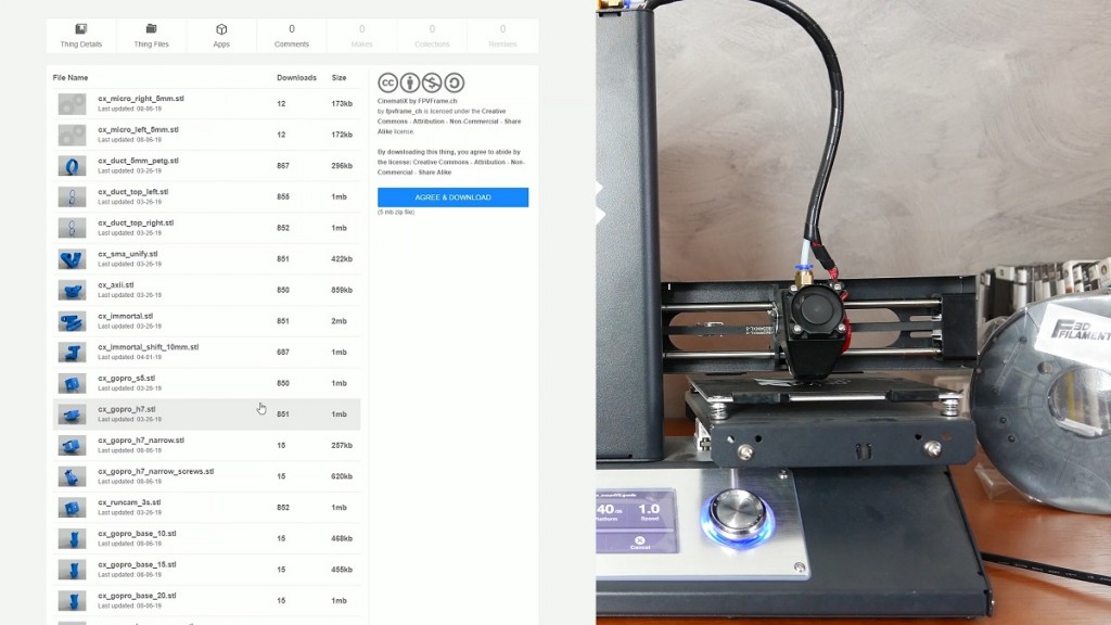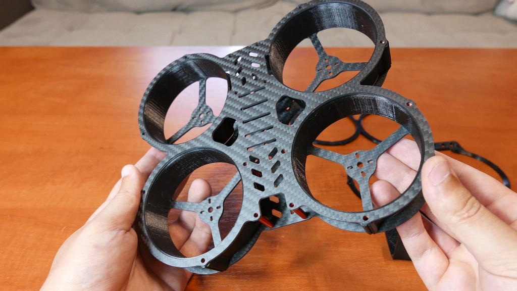 Tutaj macie wszystkie czesci z ktorych koptera zlozymy i zaraz wam o nich nieco szczegolowiej opowiem. Na pierwszy ogien zobaczcie tą rame, nazywa się Cinmatix i juz sama nazwa wskazuje, ze jej głownym przeznaczeniem są loty wolne, ale turbo takie masełkowate, wręcz filmowe. Rama ta robiona jest w Szwajcarii i ja już sie nią pobawiłem i zapoznałem. Jest wykonana na prawde świetnie i ma wiele fajnych i przemyslanych rozwiązań. Dodatkowo musze pochwalic FPVframe czyli producentów, bo dodają na prawde dobrej jakosci wydrukowane elementy do tej ramy jak np. obudowe do kamery, a jezeli podczas crasha je popsujemy to twórcy na swojej stronie dają .stl’y. Wiec jezeli macie drukarke 3D jak np. ProFab Mini i świetne polskie filamenty od F3DFilaments to mozecie sobie wydrukuwać wszystkie potrzebne elementy do tej ramy.