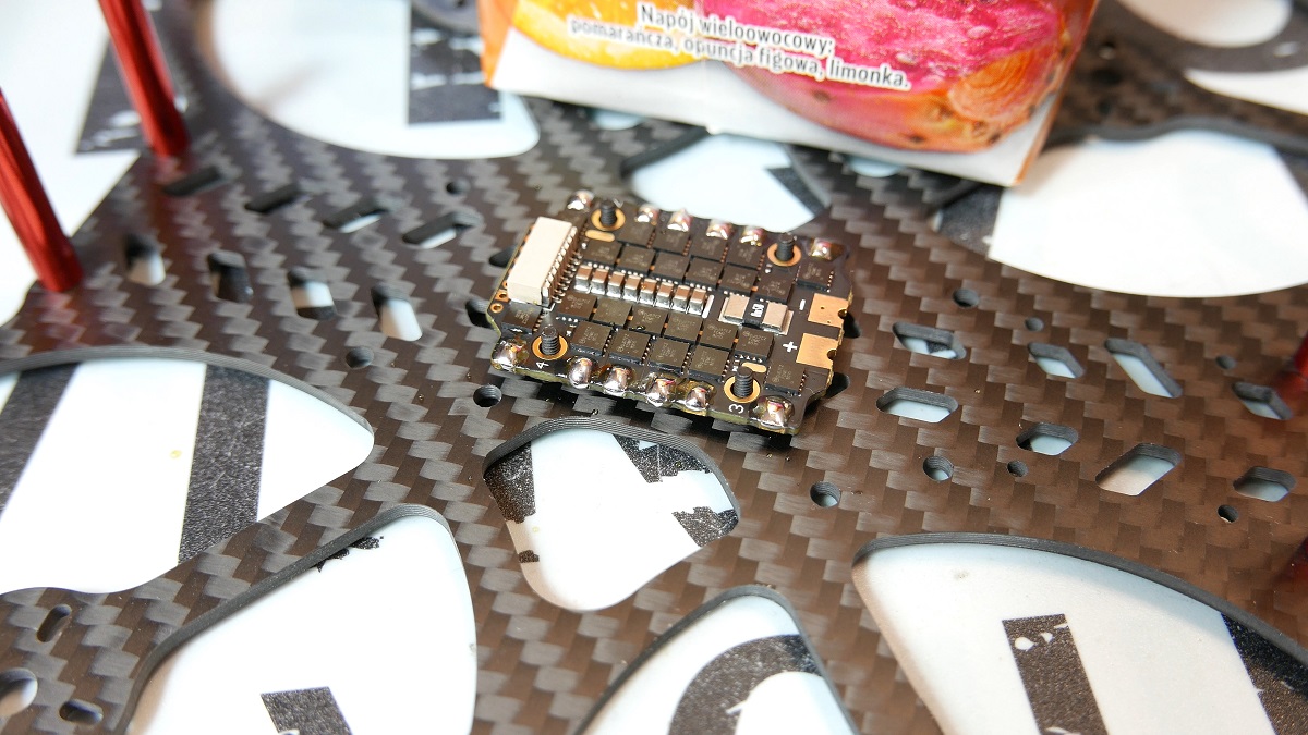 Dobra czas przygotować pady. W miedzy czasie powiem, że producent sugeruje dodanie kondesatora do tego ESC jezeli bedziecie uzywac bateri 6S i bedąc szczerym to nawet przy naszym buildzie ktory będzie 4S myslalem ze bedzie on potrzebny. Czemu, zobaczcie sami – kondesatorów na plytce nie ma wiele, co moze sugerowac sporo zakłócen w goglach, ale do tego tematu jeszcze wróce.