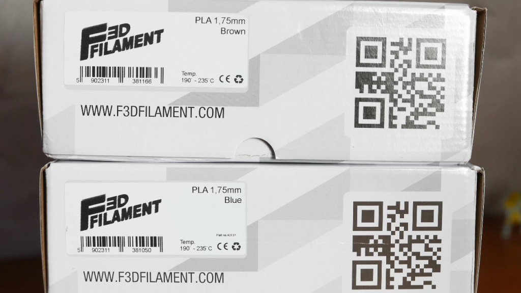 Opakowanie naszych nowych filamentów to porzadne kartonowe pudelka, gdzie z frontu mozemy zauwazyc logo producenta, link do strony internetowej i kod QR. Z boku oczywiscie znalazly sie detale tego co znajdziemy w srodku, w moim wypadku jest to PLA, o rozmiarze 1.75mm i kolorach brazowy, niebieski, szary i zielony. Po otworzeniu kazdego opakowania zauwazymy ze producent tak jak przystalo na wysokie standardy prózniowo je zamknął przezroczystym plastikiem. Dodatkowo jak widzicie w srodku mamy jeszcze mały woreczek, tam znajduja sie w cudzyslowie ziarenka, ktore pochlaniaja wilgoc, a to z kolei zapobiega temu by nasz filament sie po prostu nie zepsuł. Warto jeszcze tu zauwazyc ze na kazdej rolce mamy tak samo jak na opakowaniu – informacje w jakim przedziale nalezy drukować. Tutaj producent zaleca od 190 do 235 stopni celsjusza