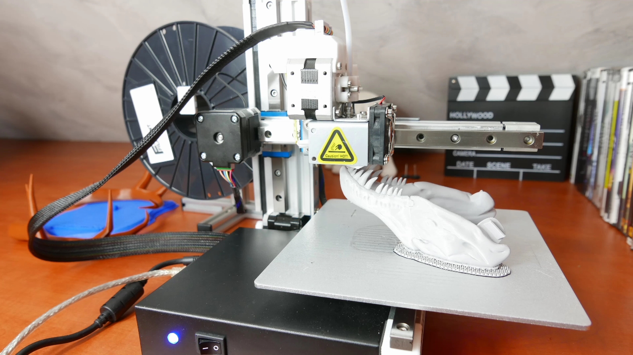 Teraz przyszla pora na dolną szczeke, tutaj drukuje bez wspornikow a caly druk trwal okolo 4h. Nie zaskocze was jednak mowiac ze ponownie zarowno Cetus3D jak i F3D Filament dal sobie rade po prostu swietnie, jedynie do czego moglbym w tym przypadku sie doczepic to gdy drukarka drukowala pod duzym kontem, bez wspornikow to tutaj Cetus lekko nie dal rady i jak widzicie pod zebami mamy takie male farfocle. Na szczescie by to poprawic nie bedzie potrzeba wiele czasu ani zachodu. Ostatnim drukiem byla gorna szczeka ktora drukowala sie prawie 11 godzin, kilka oczywiscie niedociagniec sie i tutaj znalazlo, ale to nic nadzwyczajnego patrzac na zlozonosc tego modelu. Co do filamentu ponownie dal sobie rade bardzo dobrze. I w sumie mam teraz do was pytanie, czy zauwazyliscie pewną roznicę w jakosci poszczegolnych elementow? Nie.. ? I w sumie ja tez, ale jednak to pytanie ma sens. Poniewaz pierwszy element drukowalem w 195 stopniach i zwiekszalem temeperature co 5 przy kolejnych. W taki sposob udowodnilem ze tolerancja tych filementow jest duza i nawet laicy ktorzy sie nie znaja, moga bez problemu siegnac po marke Finnotech.