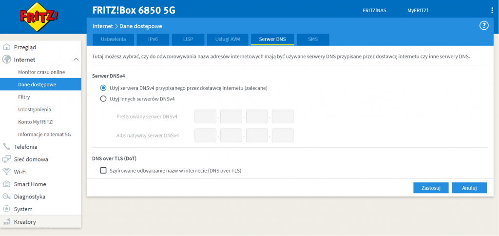 FRITZ! Box 6850 5G posiada zintegrowaną telefonię IP, mamy zarówno port TAE jak i RJ-11 do podłączenia telefonów analogowych. Posiadamy również bazę DECT pozwalającą na jednoczesne podłączenie do 6 telefonów bezprzewodowych oraz możliwość prowadzenia rozmów przez VoIP. Firmware posiada bardzo zaawansowane możliwości konfiguracyjne, dzięki czemu możemy skonfigurować go u dowolnego dostawcy. Jak już jesteśmy przy konfiguracji, to jednym z najważniejszych aspektów każdego routera AVM jest jego FRITZ! OS. Ten system jest jednym z najbardziej kompletnych, szybkich i zaawansowanych, jakie możemy obecnie znaleźć w routerze domowym. Oprogramowanie to posiada ogromną ilość podstawowych i zaawansowanych opcji konfiguracyjnych, posiadamy rozbudowane konfiguracje dla sieci WiFi oraz przewodowej siec, a także dla części Internet WAN, pokazując nam szczegółowy stan sieci 5G do której został podłączony ruter. Mamy również usługi, które są dziś niezbędne, takie jak serwer VPN z IPsec, wsparcie dla WPA3, WiFi dla gości, harmonogram WiFi, bardzo zaawansowany i konfigurowalny QoS, a także powiadomienia e-mail o wszystkim, co dzieje się w sieci lokalne. Dla bardziej doświadczonych użytkowników mamy zaawansowany widok ze wszystkimi dostępnymi funkcjami, więc nawet informatyk nie będzie zawiedziony. Wreszcie, AVM ma aplikacje na smartfony z systemem Android i iOS, za pomocą których możemy uzyskać dostęp do naszego routera Wi-Fi lokalnie i zdalnie, w ten sposób możemy wprowadzić pewne podstawowe ustawienia z poziomu aplikacji.