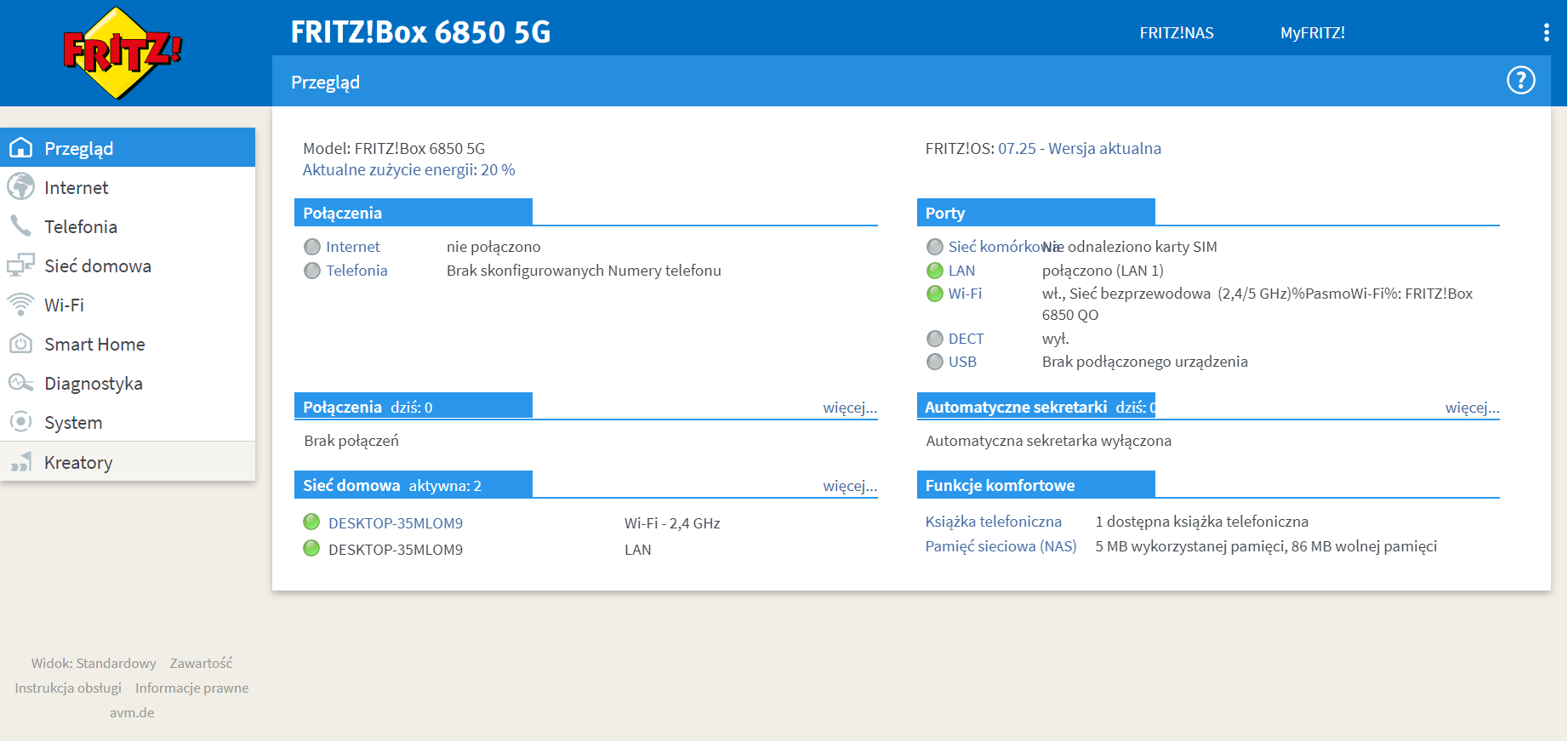 Reasumując: Po raz kolejny urządzenie od AVM do topowy sprzęt. Oferuje nam bardzo dużą prędkość pobierania i wysyłania, a oprogramowanie to istny „kombajn” dla zaawansowanych. Niech jednak mniej doświadczeni użytkownicy się nie zrażają bo soft jest po Polsku i z wyjaśnieniami co poszczególne opcje zmieniają. Nie mając dostępu do światłowodu nie zawiedziecie się 6850 5G, tym bardziej, że zasięg urządzenia jest naprawdę dobry – my polecamy!