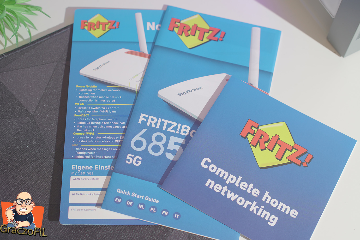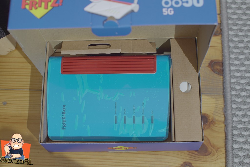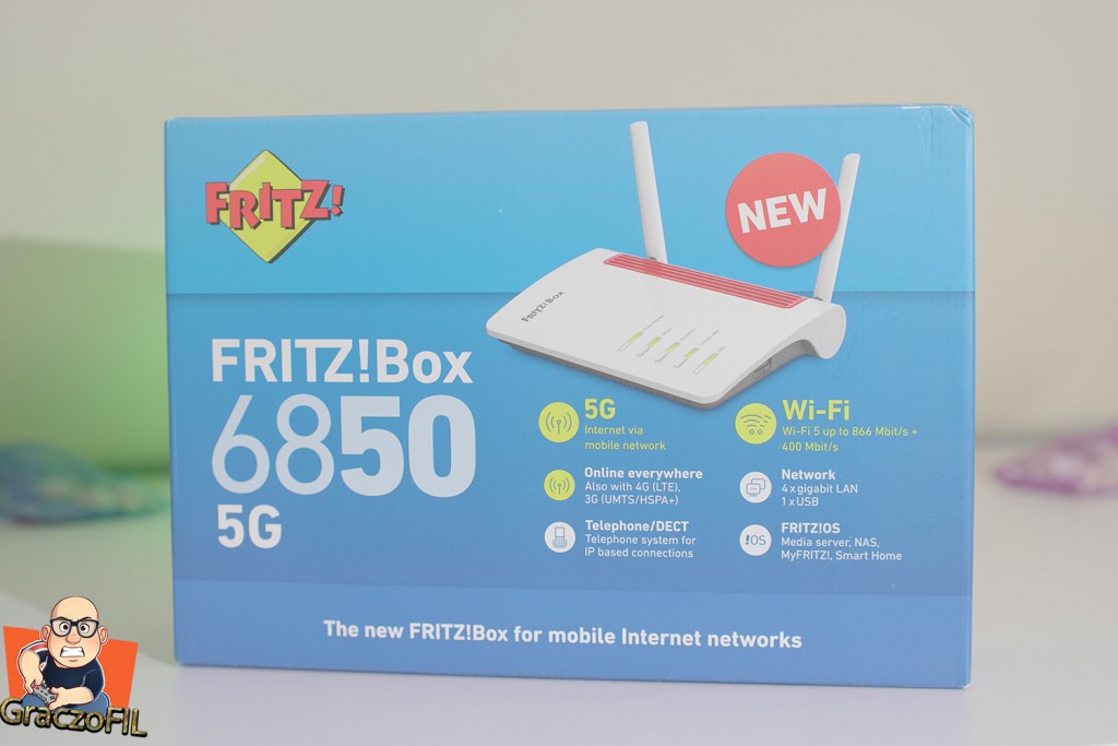 FRITZ! Box 6850 5G ma gniazdo na kartę SIM (rozmiar mini SIM), które będzie Internetem WAN, nie mamy tu tego dedykowanego portu Ethernet, ani nie możemy użyć portu LAN, aby wykorzystać go jako Internet WAN, dlatego jedynym sposobem na połączenie z Internetem jest wbudowany modem 5G / 4G / 3G – więc miejcie to na uwadze. Ten sprzęt jest zatem dla kogoś kto w swojej miejscowości nie ma dostępu do światłowodu, przy czym chce korzystać z szybkiej sieci 5G. Polecam zatem sprawdzić nasze połączenie z masztami, bo jeżeli i 5G nie dociera do nas w pełni – nie wykorzystamy w pełni dużego potencjału 6850 5G. Wbudowany modem 5G zapewni nam prędkość do 1,3Gbps pobierania i prędkość 600Mbps wysyłania, jest kompatybilny z pasmami 1, 3, 5, 7, 8, 20, 28, 38, 41 oraz 78, więc będziemy mieli maksymalną kompatybilność z operatorami.