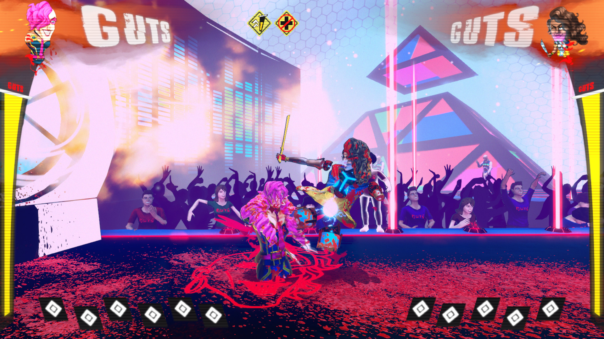 GUTS to zabawna, totalnie przegięta, ultrabrutalna bijatyka w stylu filmów Quentina Tarantino, w której przeciwnikowi musisz powyrywać kończyny. Walka trwa, nawet gdy na arenie zostaną same korpusy, a zwycięża wojownik, który pozbawi przeciwnika wszystkich kończyn i zada ostateczny cios.