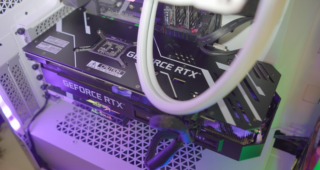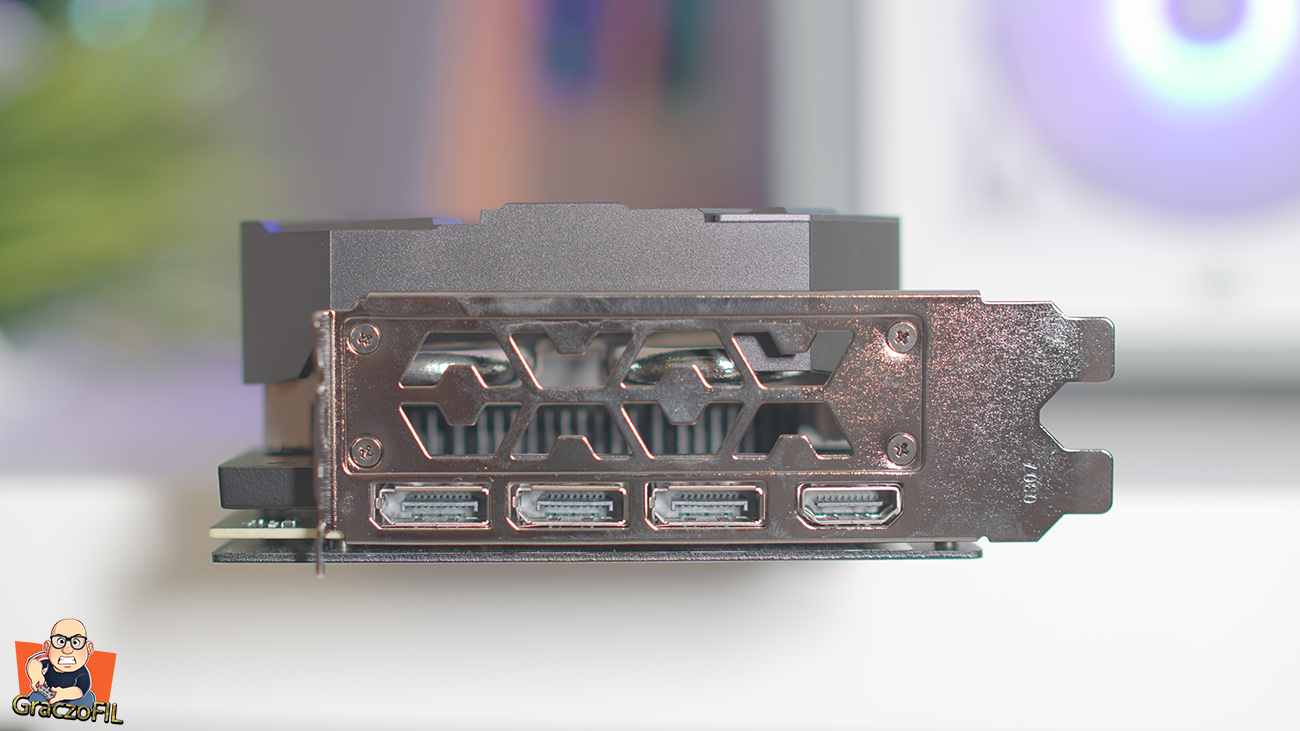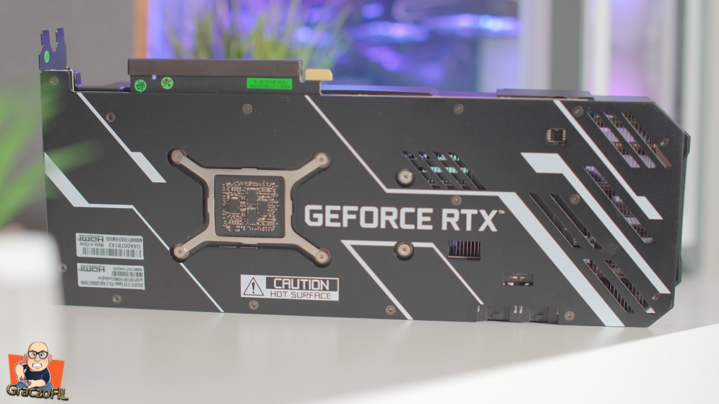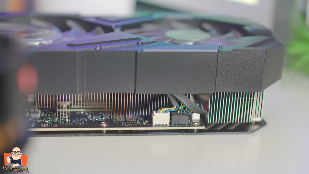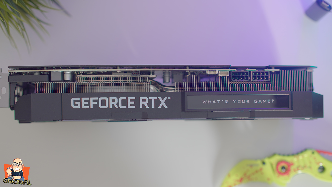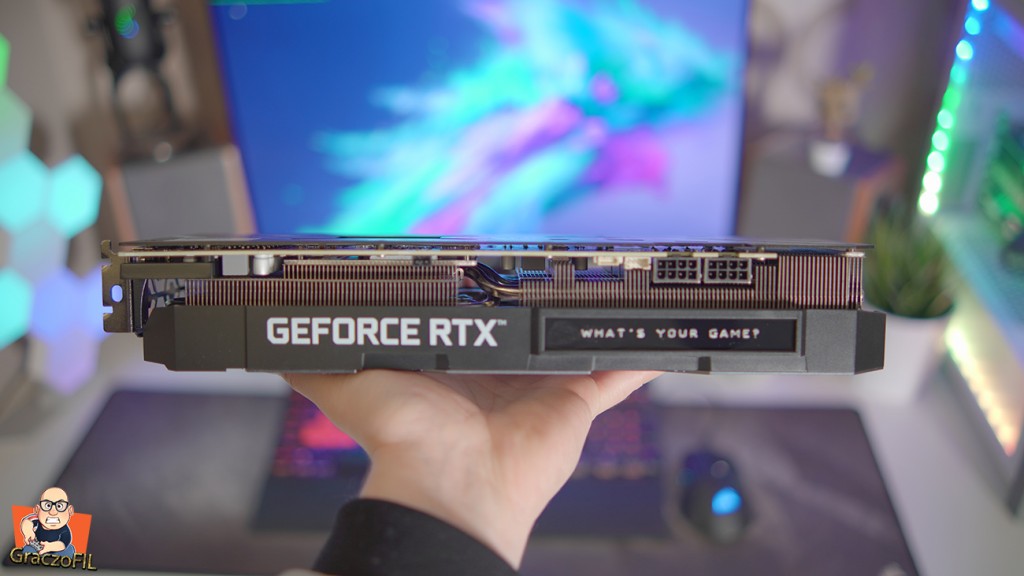 KFA2 GeForce RTX 3070 Ti SG ma prawie identyczną konstrukcję jak RTX 3080 Ti którą recenzowaliśmy. Są to jedne z największych kart graficznych na rynku, o wymiarach (330*142*58mm), które sprawiają, że i tak już duży RTX 3070 wygląda na mały – gdzie wcale tak nie jest. Większą część karty dominuje wysokiej jakości osłona z aluminium, sprytnie zaprojektowe wycięcia na otwory wentylacyjne i ostre krawędzie czy dyfuzory RGB LED. Karta z racji wielkości zajmie wam 3 sloty w płycie głównej. Producent zaleca 750W zasilacz dla tej karty, ale na naszym Corsairu RMX 650 Gold – karta działała bez zarzutu!