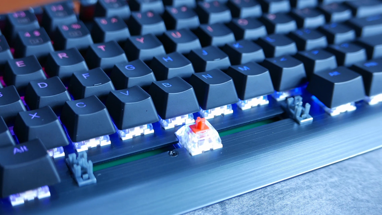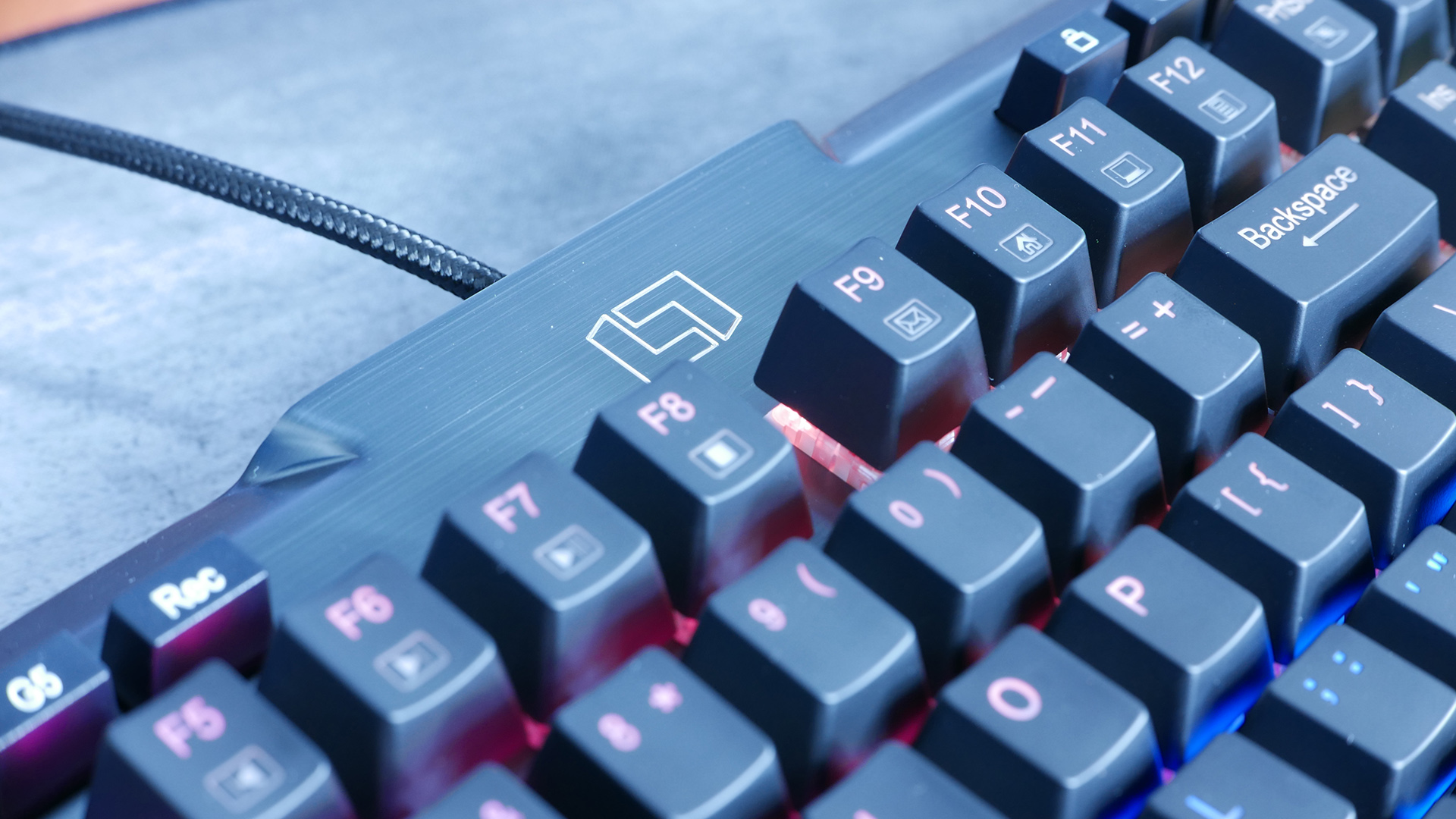 LK300 jednak nie bez powodu ma dopisek jeszcze w nazwie RGB, bowiem ten mechanik wyswietla wszystkie 16 koma 8 milionow kolorow, ktore mozemy dowolnie konfigurowac z dokladnoscia co do jednego przycisku. Dodatkowo mamy tutaj 14 wgranych efektow swietlnych, jest mozliwosc ustawienia jasnosci swiecenia czy kierunku animacji. Samo swiatlo jest wyraziste, jasne a barwy nasycone i jednostajnie podswietlaja wszystkie klawisze – tutaj nie mam do czego sie doczepic. Oczywiscie do klawiatury sa tez dostepne sterowniki ktore musimy sciagnac ze strony producta, jednak oprogramowanie przynajmniej na dzien dzisiejszy jest dosc ubogie. Mamy bowiem mozliwosc ustawienia tutaj: 3 eh profili klawiatury, nie zabraklo obszernych ustawien makr dla kazdego przycisku, no i mamy szanse z poziomu tego programu zmienic ustawienia naszego podswietlenia jezeli nie lubimy klikac przy pomocy klawisza FN. To wszystko, mi akurat te opcja w pelni wystarcza, ale wiem ze niektorzy lubia miec wglad na bardziej zaawansowane ustawienia.