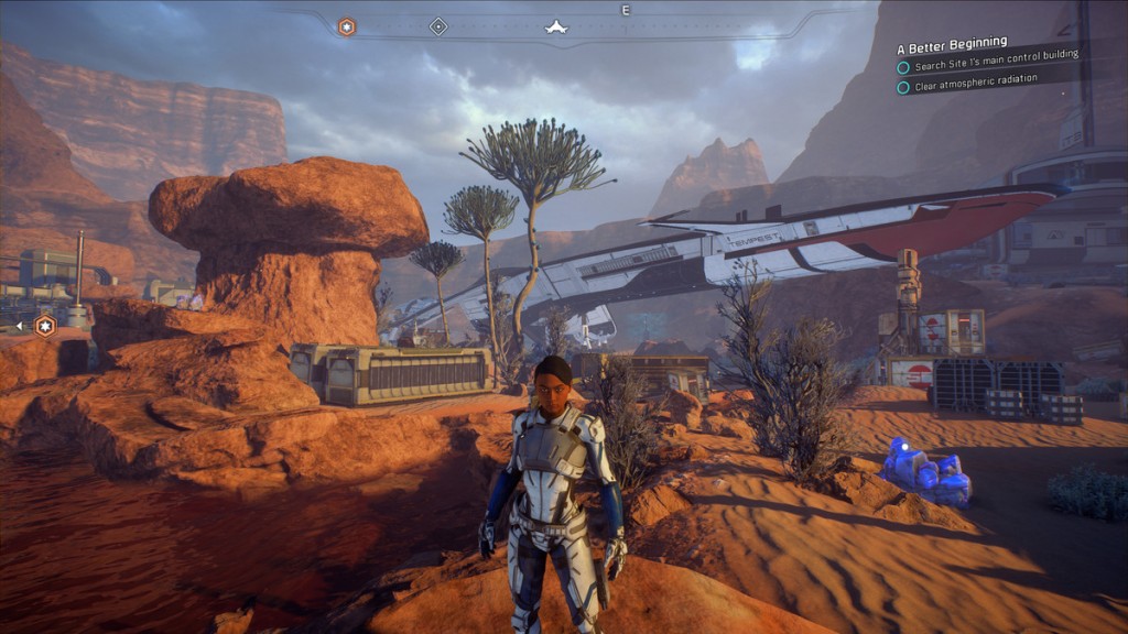 „Tempest” leci od jednego miejsca do drugiego bez pojedynków kosmicznych (czyżby zapomnieli zainstalować jakieś „powitalne” działko lub torpedy?), więc na pocieszenie możemy pojeździć Nomadem. To następca Mako z „jedynki” i można tutaj mówić o ewolucji. Nowy pojazd, chociaż wygląda niczym sterowany na baterie samochodzik z burzliwej młodości, prowadzi się całkiem przyzwoicie, chroni nas przed szkodliwymi efektami środowiska oraz pozwala wspinać się na całkiem wysokie skały. Nie jest też tak wywrotny jak jego protoplasta, jak też możemy zamontować na nim specjalne osłony. Szkoda, że nie zdecydowano się na pełny wóz bojowy, ale jesteśmy przecież odkrywcami i wtedy mało kto decydowałby się na osobiste załatwianie porachunków. Punkty zrzutu pojazdu są rozsiane dość gęsto, dzięki czemu Nomad okazał się być naprawdę użytecznym narzędziem. Nie samą walką człowiek żyje, więc przyjdzie nam wypełniać zadania dodatkowe, aktywować maszyny poprawiające pogodę, układać glify, zakładać osady, zwiedzać krypty, uwalniać więźniów czy też dostarczać przedmioty z jednego końca mapy na drugi. Twórcy gry twierdzili w wywiadach, że wzorowali się na naszym „Wiedźminie”, ale to początkowe bogactwo aktywności szybko nudzi, zaś powtarzalność questów idź-zabij-przynieś po pewnym czasie poddaje w wątpliwość zapowiedzi pracowników BioWare. Pozytywnie na tym tle wypada skanowanie przedmiotów i poszerzanie zasobów wiedzy, którą wykorzystamy przy budowie przedmiotów, jednak odkrywamy, że podczas tego procesu nie możemy biegać oraz znika ekran „przeżywalności”, więc za którymś tam razem po prostu nie zdążyłem dobiec do pojazdu na czas. Nie ma też wcale aż tak wiele do skanowania, bo pewne elementy powtarzają się naprawdę często.