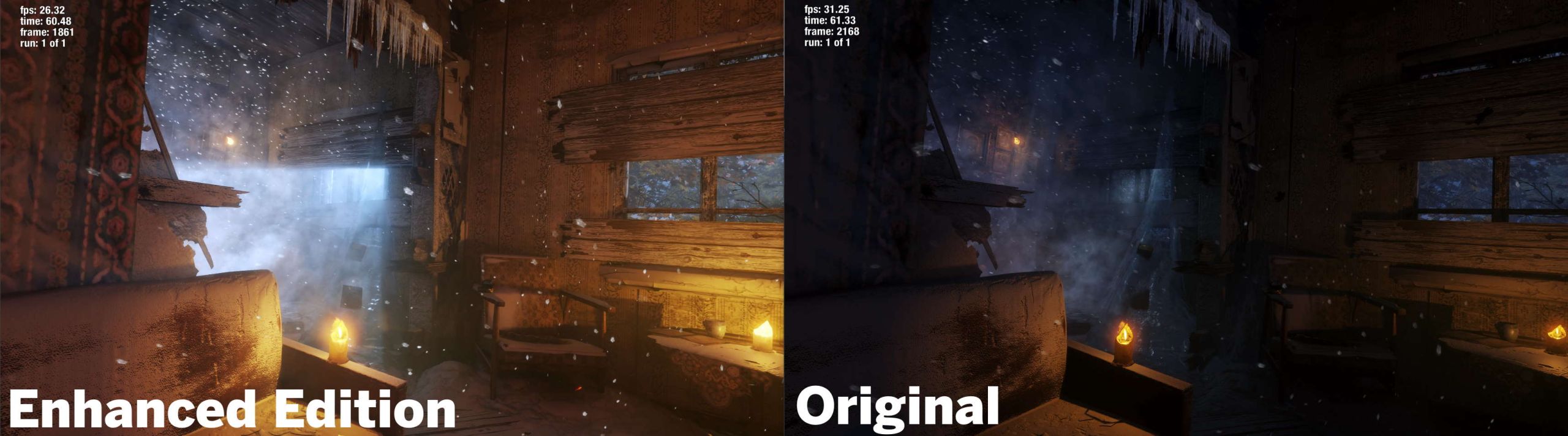 Oryginalna gra Metro Exodus była świetnie wyglądającą produkcją, a deweloperzy na pewnym etapie rozwoju zainstalowali globalne oświetlenie wykorzystujące ray tracing w silniku 4A. Ten jednak był ograniczony w swoim zakresie, używał tylko oświetlenia opartego na ray tracingu z jednego źródła, z jednym odbiciem i dla obszarów zewnętrznych i wewnątrz. Jednak Metro Exodus Enhanced Edition całkowicie usunęło z gry wszystkie trochę „sfałszowane oświetlenie”, a zamiast tego dodaje wiele nowych efektów świetlnych opartych na ray tracingu, całkowicie zmieniając wygląd gry. Patrząc teraz wstecz, w oryginalnej grze jest sztuczna mgła, a właściwie sztuczny brak oświetlenia. Czy jednak faktycznie, dużo zmieniło się gdy developerzy dodali wszystkie bajery od Nvidii?