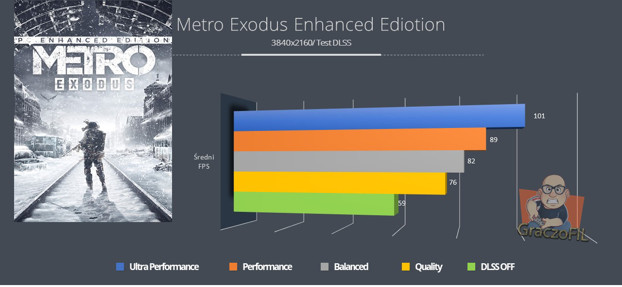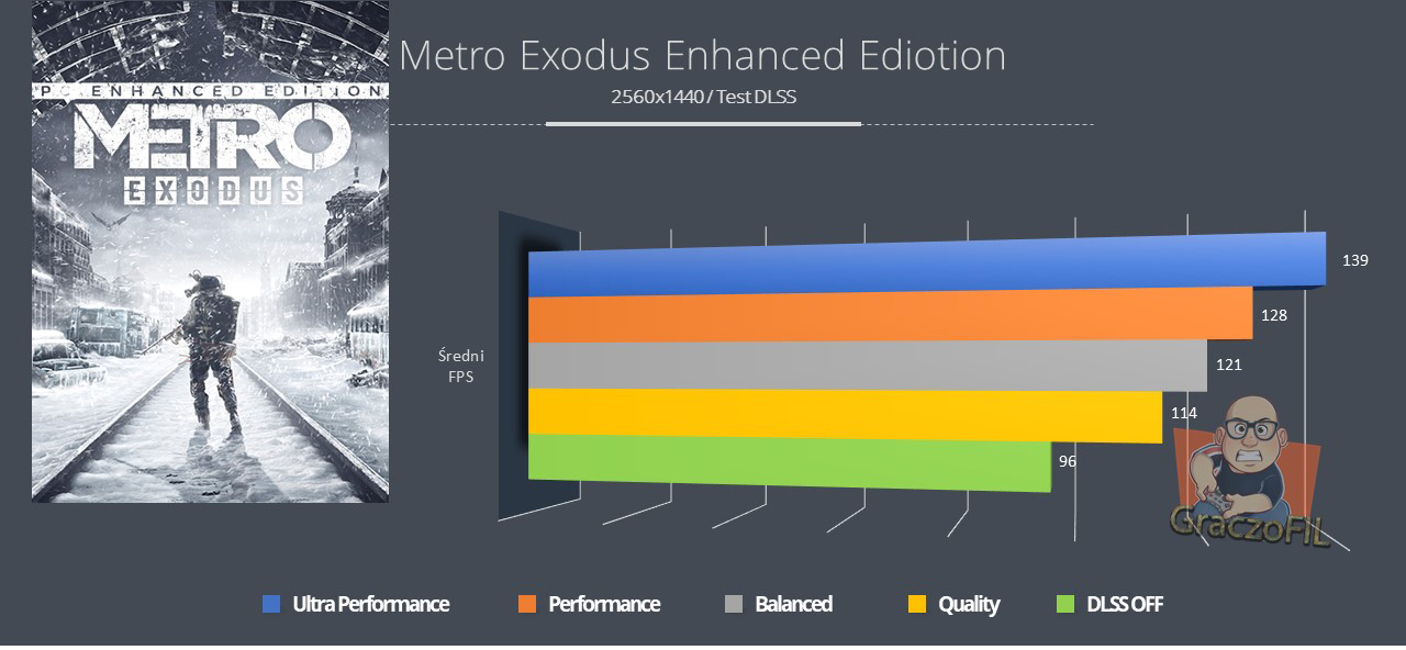 Metro Exodus Enhanced Edition poprawia oryginalną oprawę wizualną pod każdym względem, a wpływ oświetlenia ze śledzeniem promieni na rozgrywkę może być całkiem spory – szczególnie w najciemniejszych miejscach gry. Możecie się obawiać, że dodatkowe oświetlenie może zepsuć klaustrofobiczny klimat w niektórych ciemnych lokacjach, ale nic bardziej mylnego – teraz docenicie jeszcze bardziej szczegóły i detale które w grze od 4A są zaimplementowane. Pomimo dodatkowej zawartości upiększającej gre, różnica w wydajności między oryginalną grą, a Enhanced Edition pozostaje niezwykle mała. Jeśli wasz system uruchomił wcześniej Metro Exodus’a i mieliście zadowalającą płynność, spokojnie i teraz zobaczycie co twórcy dodali. Natomiast nowi gracze, mając zaledwie 2060 czy 3060, także będą mogli zanurzyć się w rozgrywkę dzięki DLSS’owi który to znacząco zwiększa liczbe FPS’ów. Jest to technika którą chciałbym, aby każda gra miała. Tutaj Nvidia i producenci gier na pewno widzą potencjał w tej technice bo co chwile słyszymy, że nowa produkcja wspiera DLSS, a to mnie niezwykle cieszy.