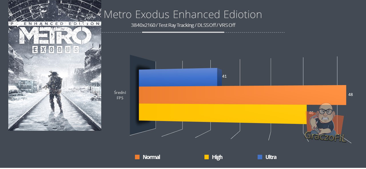 Każdy, kto wybiera ulepszoną wersję jako bezpłatne uaktualnienie do istniejącej gry, będzie pytał — jak wypada nowa wersja w porównaniu ze starą? Czy będę potrzebować nowej karty graficznej, aby poradzić sobie z nowymi bajerami od 4A Games? Na szczęście, biorąc pod uwagę, że nowe karty graficzne są rzadkie jak zmutowane dzikie zwierzęta na Morzu Kaspijskim, to jeśli możesz uruchomić ray tracing w pierwszej grze z przyzwoitym FPS’em, to ulepszona edycja w ogóle nie sprawi Ci problemu. Co ciekawe nawet będziesz miał lepszą wydajność z racji poprawy kodu w silniku, jednocześnie przy zachowaniu dodatkowych efektów, wow!
