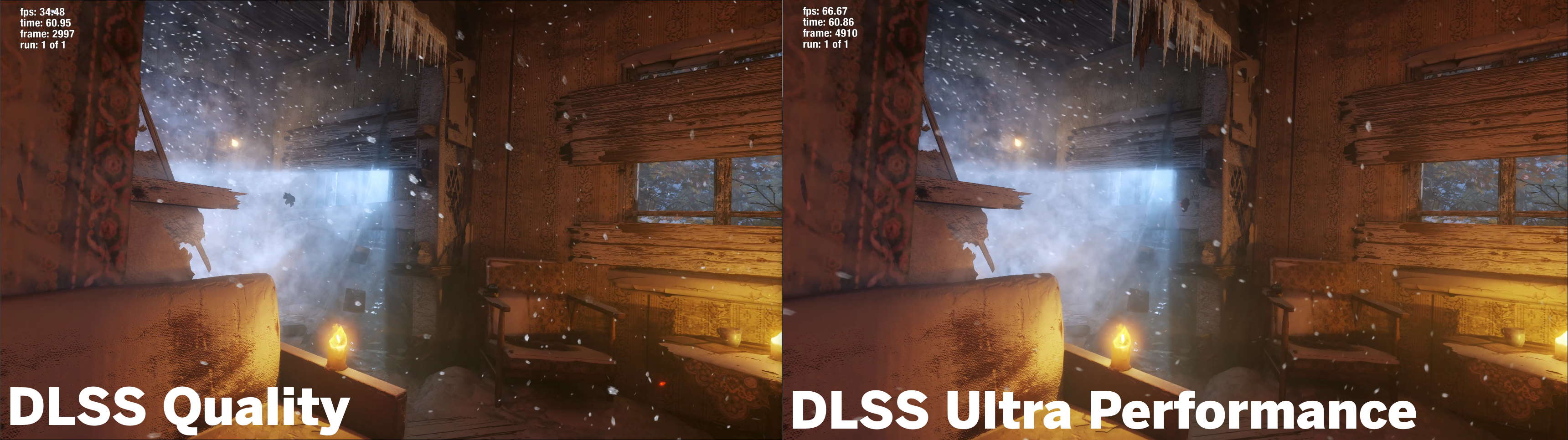 Głównym wnioskiem z naszych testów jest to, że niezależnie od tego, co zrobisz z ustawieniami w grze, absolutnie musisz włączyć DLSS. Nawet przy najmniej agresywnym, najbardziej estetycznym – „Jakość DLSS” – uzyskujesz wtedy wyższą liczbę klatek na sekundę niż oryginalna wersja, a jakosc grafiki praktycznie jest nie do rozróżnienia, a czasami nawet lepsza. Dodatkowo dzięki różnym ustawieniom DLSS możesz uzyskać wyższą wydajność od 20 do prawie 50 fps. Chociaż, jeśli mam być szczery, unikałbym trybu „Ultra performance”. Wtedy całość renderuje się w tak niskiej rozdzielczości, a szumy pojawiają się w najbardziej szczegółowych obszarach sceny i migoczą wokół cienkich linii, takich jak drzewa.