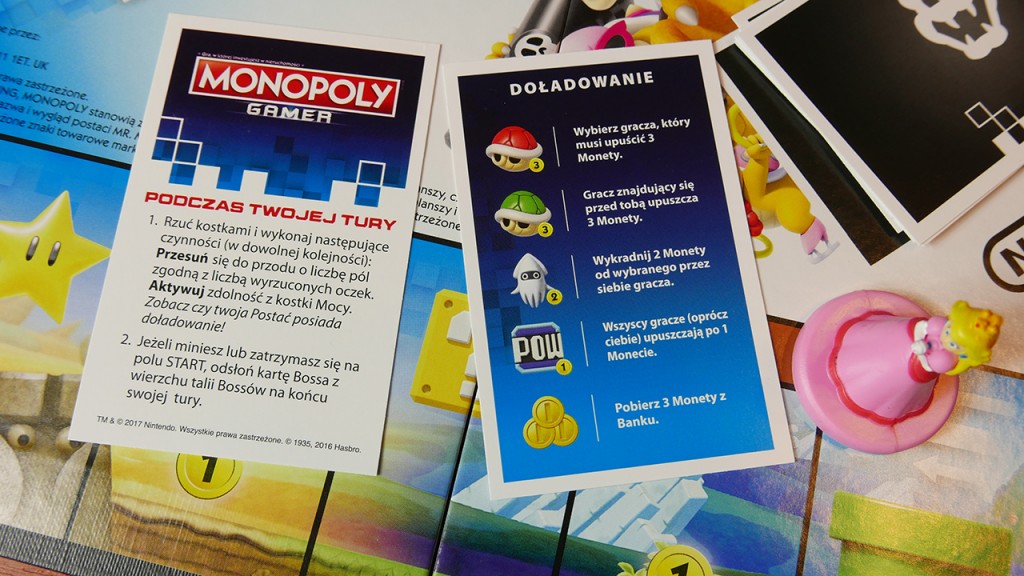 Reasumując: Jak zatem działa ta kombinacja wszystkich usprawnień i współpracy Nintendo i Monopoly? Zaskakująco dobrze. Podczas gdy większość mechaniki gry wciąż sprowadza się do czystego szczęścia, dodanie unikalnych umiejętności dla postaći, kostki Power-Up i monet to – przynosi ze sobą strategiczną warstwę, która nigdy nie była obecna w poprzednich wersjach. Gra jest prosta i łatwa do zrozumienia, a przy znacznie krótszej długości gry niż w większości gier Monopoly (dzięki bogom Monopoly), łatwo można ją złapać i grać bez poświęcania całego wieczoru na jedną grę lub spędzaniu wielu godzin na debatach na temat zasad. Pakiety „DLC” są ciekawym sposobem na przedłużenie czasu gry planszowej, a nawet mogą skusić wyjadaczy i fanów marki, by dać grze szansę. Według nas wprowadzenia Maria to sprytne posunięcie Hasbro, które może wprowadzić całe pokolenie graczy z powrotem do gry Monopoly. My zdecydowanie polecamy!