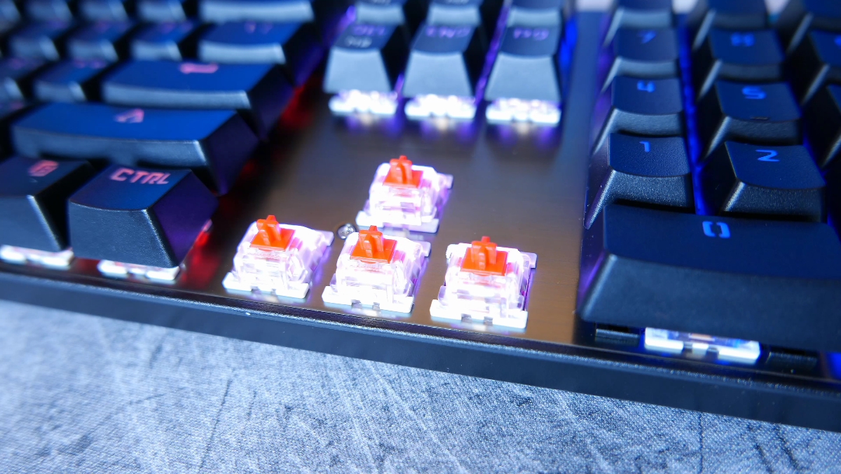W cenie mamy rowniez klawisze funkycyjne na gorze, sa tutaj standardowe funkcje jak glosniej, ciszej czy zmiana piosenek w odtwarzaczu, ale i nie tylko bo znalazly sie takie bajery jak otworzenie przegladarki, kalkulatora czy nawet e-maila za co szanuje bo tanie mechaniki tego nie maja. Ciekawostką jest rowniez fakt ze mamy przy zakupie mozliwosc wyboru dwoch typow przelacznikiow, albo gejmingowych czerwonych ktore obecnie sam mam czy bardziej stonowanych niebieskich. Co prawda nie sa to oryginalne niemieckie cherry mx’y, a OUTEMU czyli chinskie odpowiedniki ktore wedlug producenta moga wytrzymac 50milionow uderzen. Tak wiec pogralem sobie na tej klawie blisko dwa tygodnie i musze stwierdzic fakt ze w grach czerwone przelaczniki sprawdzaja sie super, kultura pracy calosci jest jak najbardziej poprawna i tak naprawde to do czego moge sie przeycepic to pierdoly, bo np. nie ma portu usb z tylu, albo kablka w oplocie czy oprogramowania do wygodnego poslugiwania sie oswietleniem. Szkoda rowniez ze nie mozna kupic tej klawy w polsce – ja swoj egzemplarz zamowilem z Gearbesta bo maja darmowa przesylke, no i przy zakupie dostalem kod na 10% znizki – tak wiec jezeli chcecia ja kupic ją o 5 dolcow taniej, wejdzicie w link w opisie i wpiszcie potem podany kod.