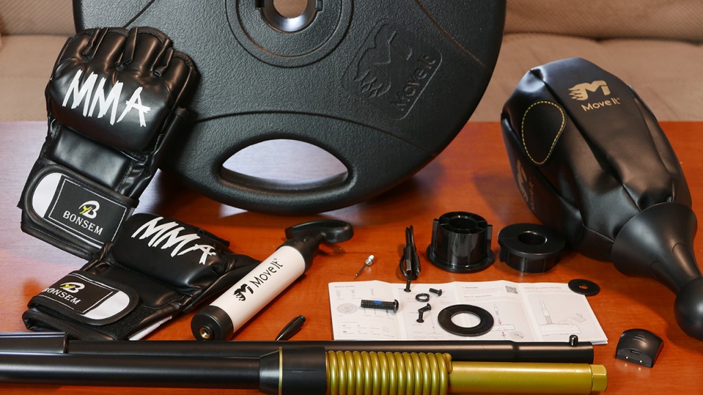 MoveItSpeed – To worek treningowy Bluetooth i czujniki ruchu. Integruje się z aplikacją, która zapewnia instrukcje wideo, monitorowanie postępu, grywalizację i elementy społecznościowe, dzięki czemu cały proces jest zabawny i wciągający. Testuję jeden z pakietów Indiegogo, który zawiera worek treningowy i parę rękawic bokserskich w stylu MMA. To zdjęcie pokazuje również aplikację, o której omówimy wkrótce. MoveItSpeed to torba treningowa zaprojektowana dla wszystkich niezależnie od doświadczenia. Sama torba jest wykonana z PVC i skóry, którą nadmuchujesz, gdy dostajesz paczkę. Choć jest świetny dla początkujących i lekkich napastników, wielowarstwowa konstrukcja i konstrukcja podstawy są również testowane, aby wziąć udział w poważnych awanturach. Tuż pod torbą dzieje się technologia. Wskaźniki LED otaczają podstawę torby, a znajdująca się pod nią kula zawiera żyroskop, przycisk zasilania / połączenia i interfejs Bluetooth.