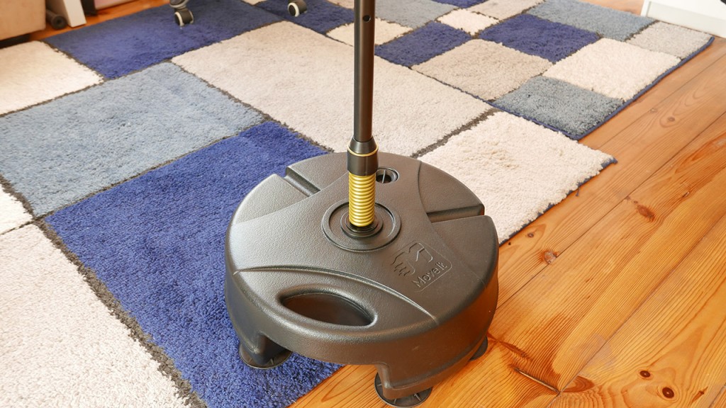 Moduł ładujący wysuwa się z tyłu podstawy w celu ładowania za pomocą kabla MicroUSB, dołączonego do opakowania. Dostaniesz około 6 godzin ciągłego użytkowania między ładowaniami. Wysokość torby można regulować do 68 ″ za pomocą pokrętła pod czujnikiem. Całość instaluje się z kilkoma biegunami złącza w ciągu zaledwie kilku minut. Podstawa jest obciążona wodą, którą wypełnia się za pomocą nasadki z tyłu podstawy. Dodaje 13 kg do całkowitej masy jednostki i w połączeniu z przyssawkami na podstawie utrzymuje całą jednostkę stabilnie podczas uderzenia. Regulacja obrotu podstawy umożliwia zmianę prędkości odbicia, co jest przydatne, gdy rozwijasz swoje umiejętności i koordynację. Inteligentna funkcjonalność wynika ze zdolności urządzenia do wykrycia czystego uderzenia na podstawie wykonywanego treningu. Po trafieniu bezpośrednim trafieniem jednostka zaświeci się na zielono, wskazując dobry strzał. Jeśli twój strzał jest wyłączony, dioda LED świeci na czerwono. Myślę, że przegapiłem mrugnięcie na tym zdjęciu, ale zaufaj mi, gdy powiem ci, że tam jest.