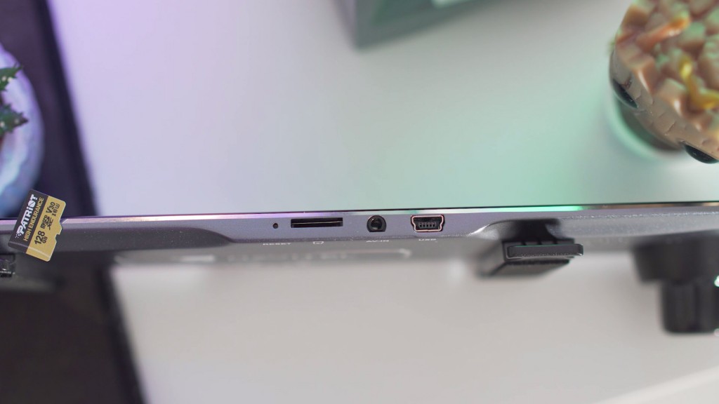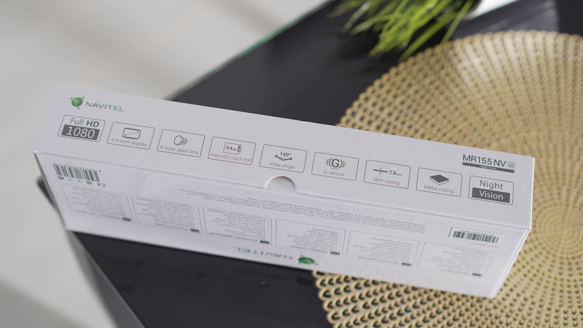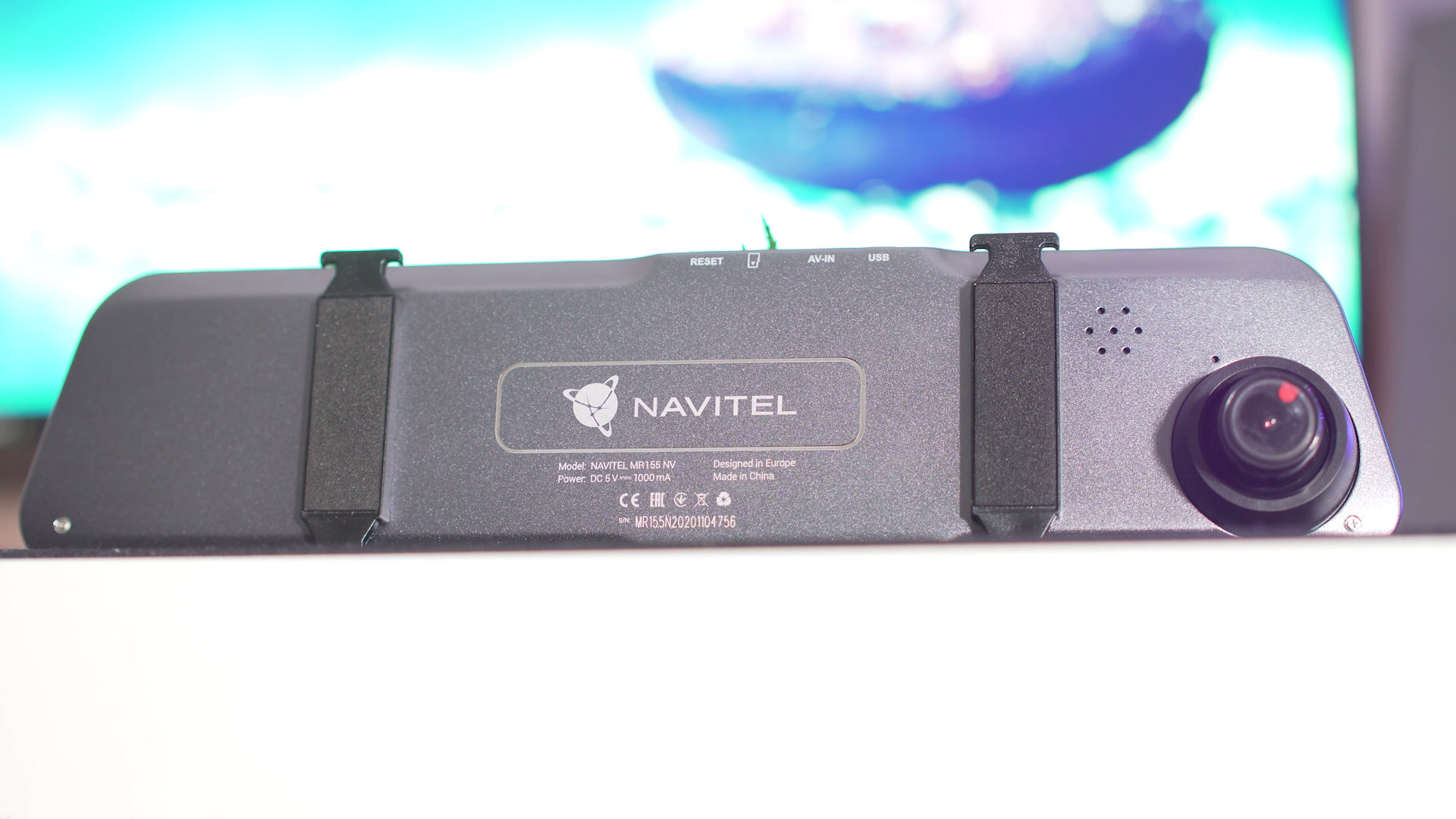 Tak wyglada kamerka zaaraz po wyjeciu i od razu czuc lekkos, 221 gramy to malo a super smukła 7,5mm talia robi wrazenie. Calosci dopełnia dobre spasowanie i uzyty metal w postaci obudowy a nie plastiku. Pod spodem umieszczono przciski funkcjne do poruszania sie po menu i fajnie ze nie na nich oznaczenia co one robia a na lusterku wyzej, wiec patrzac na rejestrator wiemy co wciskamy – konkurencjo uczcie sie od Navitela. Od góry mamy dziurke resetu do ustawien fabrycznych, wejscia na karte microSD, wejscie AV i do ostatniego portu wtykamy zasilanie. Na pleckach wiele sie nie dzieje, sa dwa czarne uchwyty z powloka by nie porysywala nam oryginalnego lusterka + oczywiscie soczewka ktora mozemy regulowac lewo prawo, gora dół.