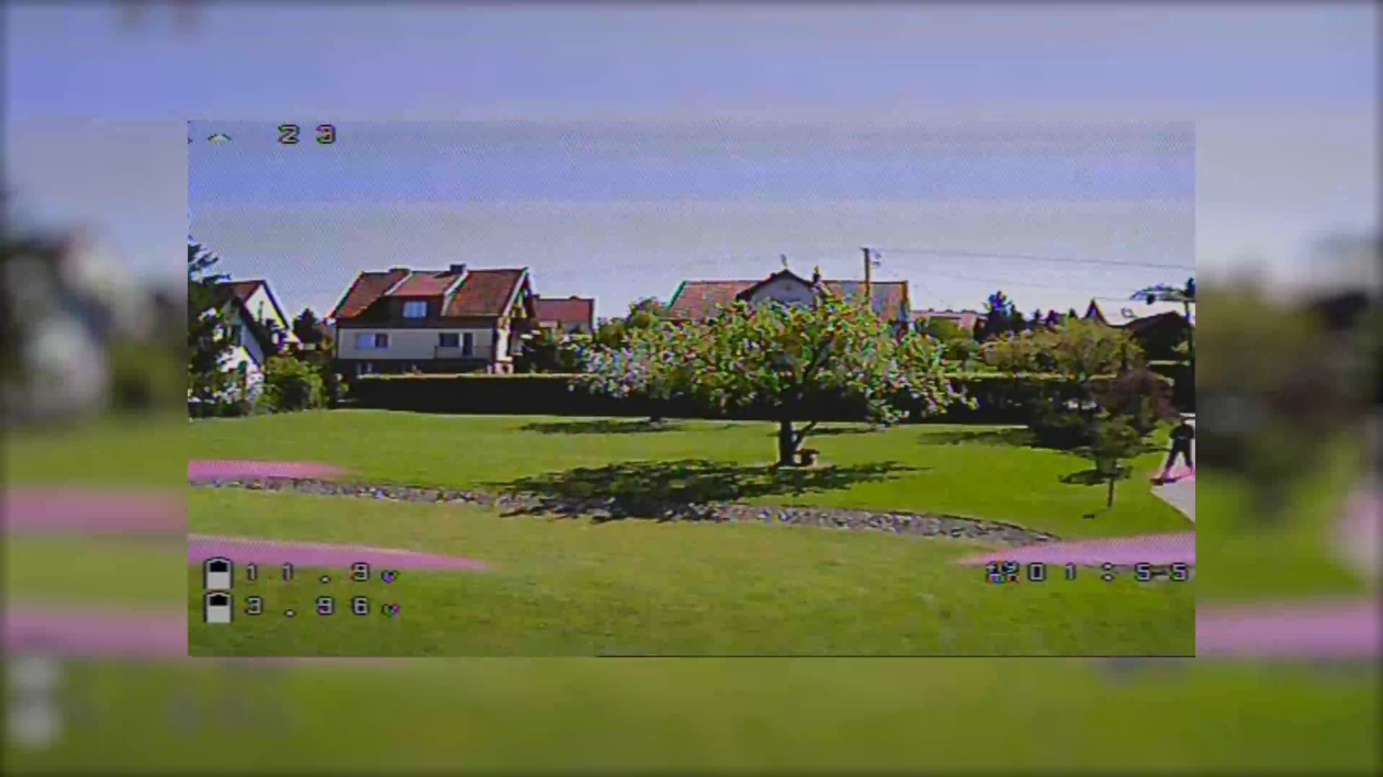 No dobra czas zatem odpalic ta maszyne i zobaczyc jak te czesci sie sprawdzaja. Tutaj musze wam powiedziec ze pierwsze co od razu rzuca mi sie w oczy i wam jezeli go kupicie to obraz w goglach – ten jest po pierwsze. Strasznie waski FOV, tak jak byscie latali na monitorze z proporcjami 4:3 gdzie wiekszosc takich kamer ma szerokokatny obiektyw niemal jak monitory 21:9. To nie tylko wam ucina obraz po bokach dramatycznie, ale dzieki temu nawet mi gdzie wydaje mi sie ze juz troche umiem latac to wlasnie te latanie jest duzo trudniejsze. Po druegi jakosc, porownajac ta kamere do tego co oferuje np. Foxeer, to nieba a ziemia. Tak wiec ta optyka ktora tu mamy jak dla mnie od razu jest do wymiany. Co ciekawe natomiast nie mamy tutaj zadnych szumow, obraz jest krystalicznie czysty niczym dobrej jakosci metaamfetamina. Dobra nie bede wam tu juz tego obrazu pokazywal a podlacze kamere HD i dalej bede prawil swoj wywod.