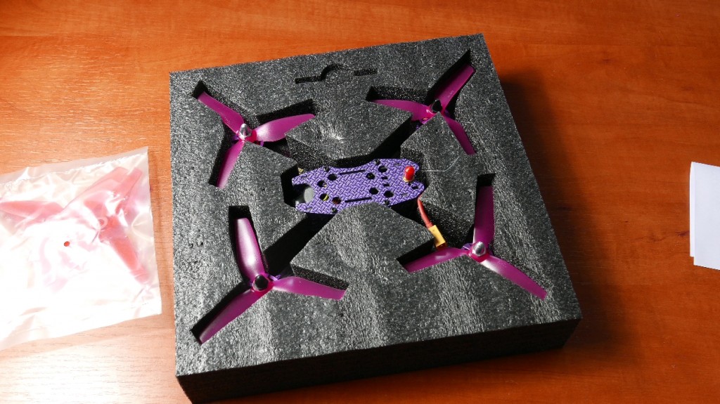 Jezeli chodzi o opakowanie to zarowno z przodu i z tylu znajduje sie jedynie szkic i zdjecie tego co znajdziemy w srodku wraz z nazwa Nebula 230, tutaj producent poskapil informacji technicznych. Na szczescie dron jest fenomenalnie zapakowany do transportu bo z kazdej strony otacza go mocna pianka. W srodku natomiast znajdziemy, no coz… tylko zapasowa paczke smigiel marki krzak. Jak zatem dron wyglada po wyjeciu, tutaj musze chylic czola bo jest zlozony i polutowany wzorcowo, wszystkie sruby mocno sie trzymaja, a i wyglada na prawe dobrze. Rama jest wykonana z mieszanego karbonu, 4mm ramiona i 2mm Top i Bottom plate czyli standardowo – ale to powinno zapewnic dobra ochrone w przypadku niekotrolowanych upadków.