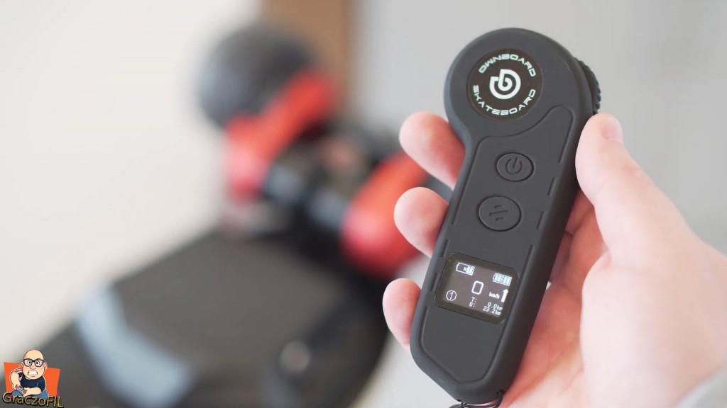 Ostatnim elementem jest pilot, wykonany z lepszego plastiku, mily w dotyku i z ekranikiem OLED. Ten wyswietla nam aktuana predkosc, na jakim z 3 eh trybów predkosci jedziemy, łączne przejechane kilometry jak i te od wlaczenia deski. Generalnie fajny prosty pilocik dzialajacy bez zarzutu i z prezyzyjnym pokretlem obrotów silników. Pojezdzilem na niej dwa tygodnie i od razu czuc ze ESC jest swietnie skaliborwane, mamy tu masełkowaty start pomimo duzej mocy. To samo dotyczy sie hamowania – wciskajac hamulec nie martwie sie ze nagle stanie deska w miejscu, a my wyskoczymy jak z procy, tutaj powoli i systematycznie wytracamy predkosc. Zaskoczyłem się równiez mocą ktora tutaj jest, spokojnie podjedzamy pod 30% wzniesienia i w kazdym momencie mozemy przyspieszyc, tak wiec Górki dla W2 Pro to zadna przeszkoda. W tej cenie jest to jedna z najmocniejszych desek,a nawet moze konkurowacz z niektorymi o 1000zł drozszymi. Ja predkosc maxymalna uzyskalem 41km/h i jako jeszcze amator w tym sporcie to naprawde czuc adrenalinke.