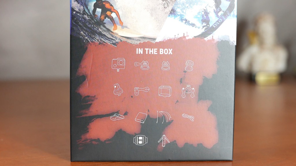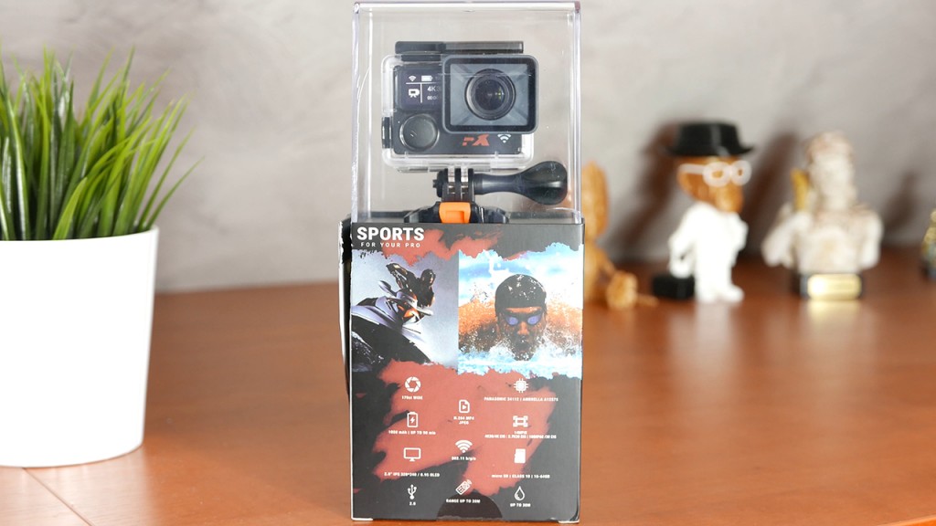 Producent umiescił swoj sprzet podobnie jak gopro czyli w podlozne opakowanie, a na dole znajdziemy kilka detali technicznych. Z tylu pudelka znajdziemy informacje co znajdzieym w srodku i sprawdzmy czy faktycznie tam to jest. Mamy zatem instrukcje obslugi w jezyku angielskim, ale urzadzenie jest bardzo proste w obsludze wiec pewnie i tak wam sie nie przyda. Otrzymamy tez opaske rzepowa z klamra do pilota ktory moze sterować kamera bezprzewodowo. Swietnym i malo spotykanym dodatkiem jest tez maly skladany statyw z gwintem 1/4 cala, ten wydaje sie byc stworzony z dosc mocnego plastiku. Nie zabrakło zwyklego kabla USB, jest tez obudowa ktora sprawi ze kamere mozemy bez problemu zatopic na glebokosc 30m. Poza tym oczywiscie dostajemy sporo przejsciowek, przylepców i uchwytów wiec montaz na ramie roweru, kasku bądz w innej dziwnej pozycji powinien byc bezproblemowa.