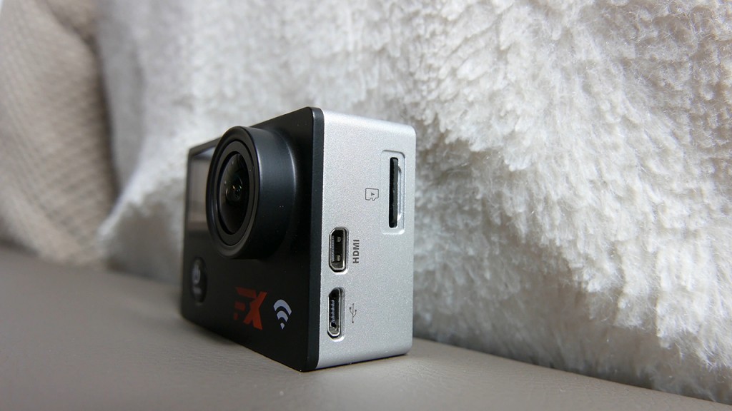 Tak zatem wyglada kamera od razu po wyjeciu z opakowania i musze wam powiedziec ze jest ona troche ciezsza niz wszystkie inne, a to dlatego ze producent zamknal ją czesciowo w aluminiowej obudowie, co bylo genialnym rozwiazaniem bo to sprawi ze przetrwa mocniejszy łomot nawet niz gopro 7. Poza tym mamy tutaj plastik sredniej jakosci, a spasowanie calosci jest bardzo dobre. Po lewej stronie Reflixa R1X znalazl się port USB, Mini HDMI jak i slot na karte microSD. Po przeciwległej stronie mamy przycisk łącznosci bezprzewodowej. Na górze znalazłsię głośnik jak i przycisk funkcyjny do poruszania sie po menu, a na dole mamy… no wlasnie szkoda ze nie ma tutaj gwintu dla statywu, bowiem by kamere umiescic na dolaczonym statywie musimy ubrac ją w specjalna obudowe. Poza tym mamy tu oczywiscie klapke z bateria o pojemnosci 1050mAh, taka wielkosc pozwoli nam nagrywac maxymalnie przez 80minut. Na przodzie znalazl sie przycisk wlaczenia i wylaczenia kamery, jest obiektyw ktory posiada kąt widzenia 170 stopni no i mały wyswietlacz LCD pokazujacy nam najwazniejsze parametry jak np. poziom rozladowania rejestratora.