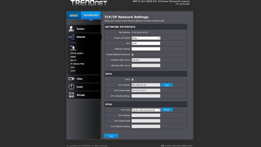 Zakładka Event, to kolejne opcje z ktorych mozemy skorzystac – czyli mamy tutaj detekcje ruchu, a nawet sledzenie. Oczywiscie gdy chcemy to mozemy wlaczyc opcje wysylania nam smsów, mmsów, czy e-maili gdy w poszczegolnych godzinach kamera wykryje ruch, a my wiemy ze go tam nie powinno byc. IP315PI moze oczywiscie nagrywac na karte microSD, albo na dysku serwera jezeli do niego jest podlaczony, a nawet jest opcja wysylania zdjec czy filmow na FTP. W Network by nie przedluzac nie bede sie zaglebial, jedynie przeskroluje wam tamtejsze opcje, a jezeli jestescie ich ciekawi to zatrzymajcie video i sobie popatrzcie tam dokladniej. Generalnie, mamy tutaj wszystkie mozliwe opcje bardzo zaawansowanej kamery do monitoringu, ba nawet bym powiedzial ze jezeli chcielibyscie miec ja u siebie w domu to ponad 70% tych funkcji nie wykorzystacie.