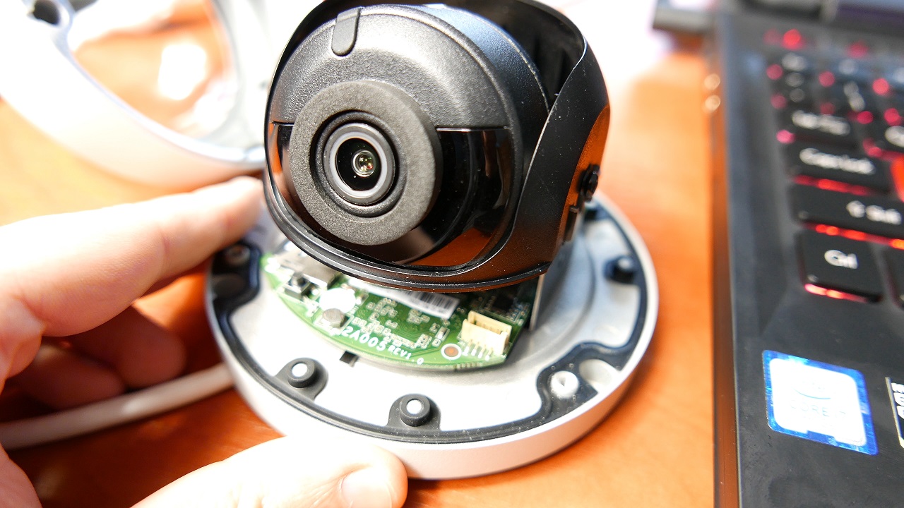 Tak wyglada nasze urzadzenie, jest to standardowa kopułowa budowa ale o wysokim standardzie ochrony IP67 czyli wedlug Unijnego prawa – całkowite ochrona przed kurzem jak i przed silnymi strumieniami wody porównywalnymi do silnych fal. Jest tez wykonana z mocnych plastików, bowiem odporność na uderzenia mechaniczne przez wandali została wyceniona na klase IK10. Tak wiec w teorii zadna polska pogoda i srednio mocne uderzenia IP315PI nie straszne. Kamera ma dwa wystajace kable i jeden z nich to zasilanie PoE (czyli Power over Ethernet) a drugi to zwykla wtyczka pradowa jak mamy np. w niektorych laptopach.