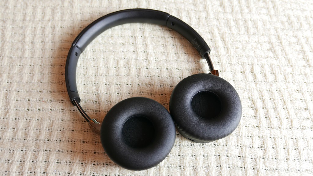Pady wykonane ze średnio miękkiej gąbki i zostały pokryte przyjemną w dotyku syntetyczną skórą. Oferują dobrą izolację od szumów zewnętrznych oraz nie męczą uszu. Pod gąbkami kryją się dynamiczne przetworniki o średnicy 40 mm z magnesami neodymowymi. Warto jeszcze tu zaznaycz iz Mamy tutaj do czynienia z konstrukcją nauszną, a więc słuchawki spoczywają bezpośrednio na małżowinach (czyli nie otaczają ich zupełnie). Natomiast Wbudowana bateria pozwala teoretycznie na 14 godzin ciągłego odsłuchu przy głośności ustawionej na maxa no i W praktyce przy takiej głośności udało mi się uzyskać bardzo zbliżony wynik. Mogę zatem potwierdzić deklaracje producenta.