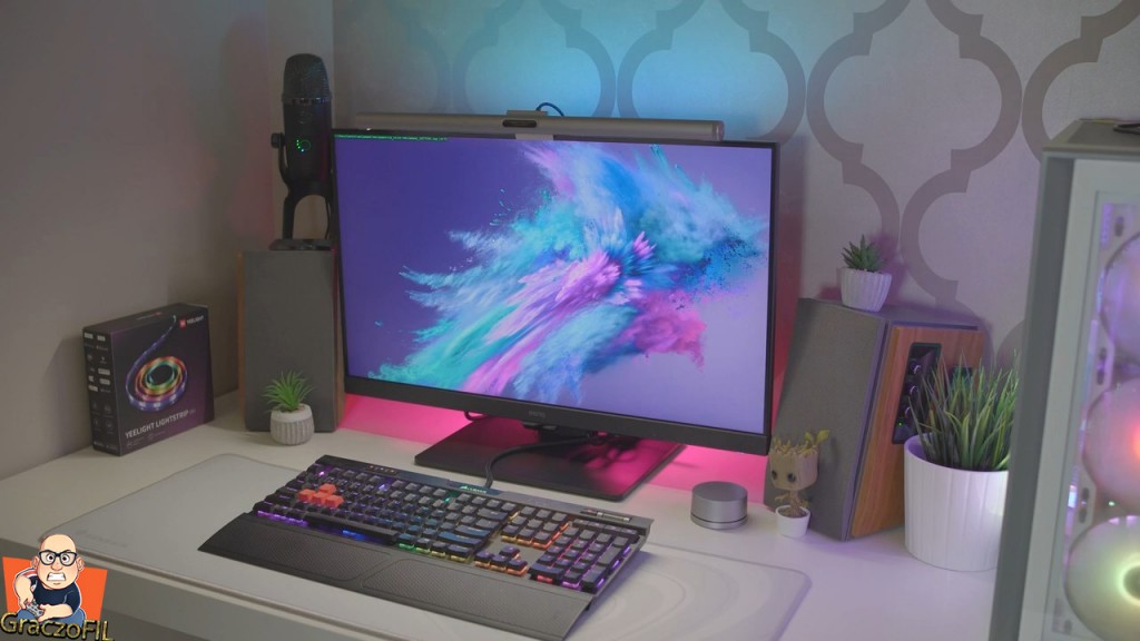 Bez bicia się przyznam, ze nigdy takiej lampki nie miałem, ale coraz częściej je widywałem gdzieś tam na technologicznych kanałach. Sama jej funkcja czyli po prostu oświetlenia tego co mamy na biurku sprawdza sie naprawdę extra. Pomimo ze mam zapalone inne oświetlenie a mowie tu o żyrandolu, to po włączeniu takiego yeelithta różnica w doświetleniu jest bardzo znaczna i to na spory plus. Informacje typu ze nasze oczy będą mniej zmęczone, a komfort pracy wzrośnie, no to to w 100% potwierdzam. Zamiast kupować albo mieć taka zwykła lampę stojąca na biurku, kupujcie takie rozwiązanie – sprawdzi sie o wiele lepiej. No ja akurat mam Screen Light Bar Pro i ten model jest godny polecenia, bo wyregulujemy sobie barwę światła jak i jej moc, z tylu paski ledowe są kompletnie zbędne ale jak jesteście graczami to docenicie pełne RGB, animacje jak i wsparcie Razera – te mieniące się światło z tylu może sie podobać. Zanim jednak kupicie, sprawdźcie tył waszego monitora bo tu konstrukcja Yelighta ma jedno ograniczenie – bowiem gdy macie mocno wypukle plecy to tej trzymaczki nie zawiesicie i będziecie musieli mocno kombinować. Poza jednak tym, wad nie znalazłem.