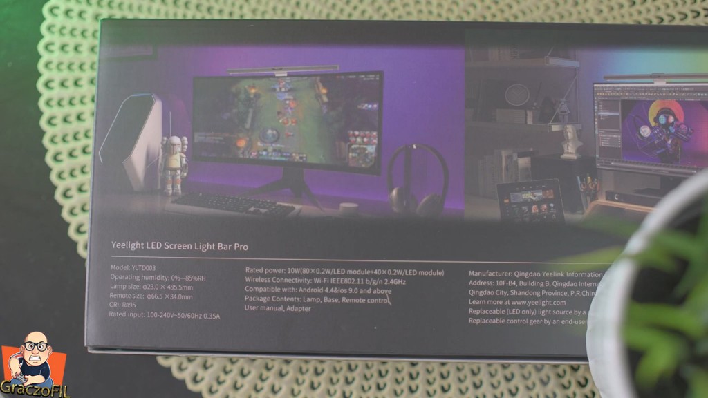 Szanuje tez za dodanie na tyle paska ledowego z pełnym RGB, te rzuca nam na ścianę super efekt rozszerzający i dający fajna immersje. Lampa jest kompatybilna z takimi platformami jak Razer Chroma i Overwolf co daje nam animacje dostosowane do wydarzeń na ekranie monitora. Również jeżeli mamy inne peryferia z ekosystemu Razera, to ten Screen Light Bar Pro może się z nimi zsynchronizować. Z drugiej strony mamy kolejną listwę, ta ukryta w pełni za dyfuzorem światła będzie oświetlać nam wszystko to co mamy na biurku. Tutaj pochwale yeelighta bo te Ledy generują przyjazne dla wzroku światło i zostało to zaprojektowane w taki sposób, aby zapobiegać odblaskom. I faktycznie nie ma żadnych niepożądanych efektów, a o to obawiałem się najbardziej.