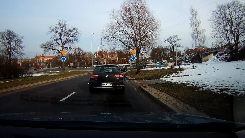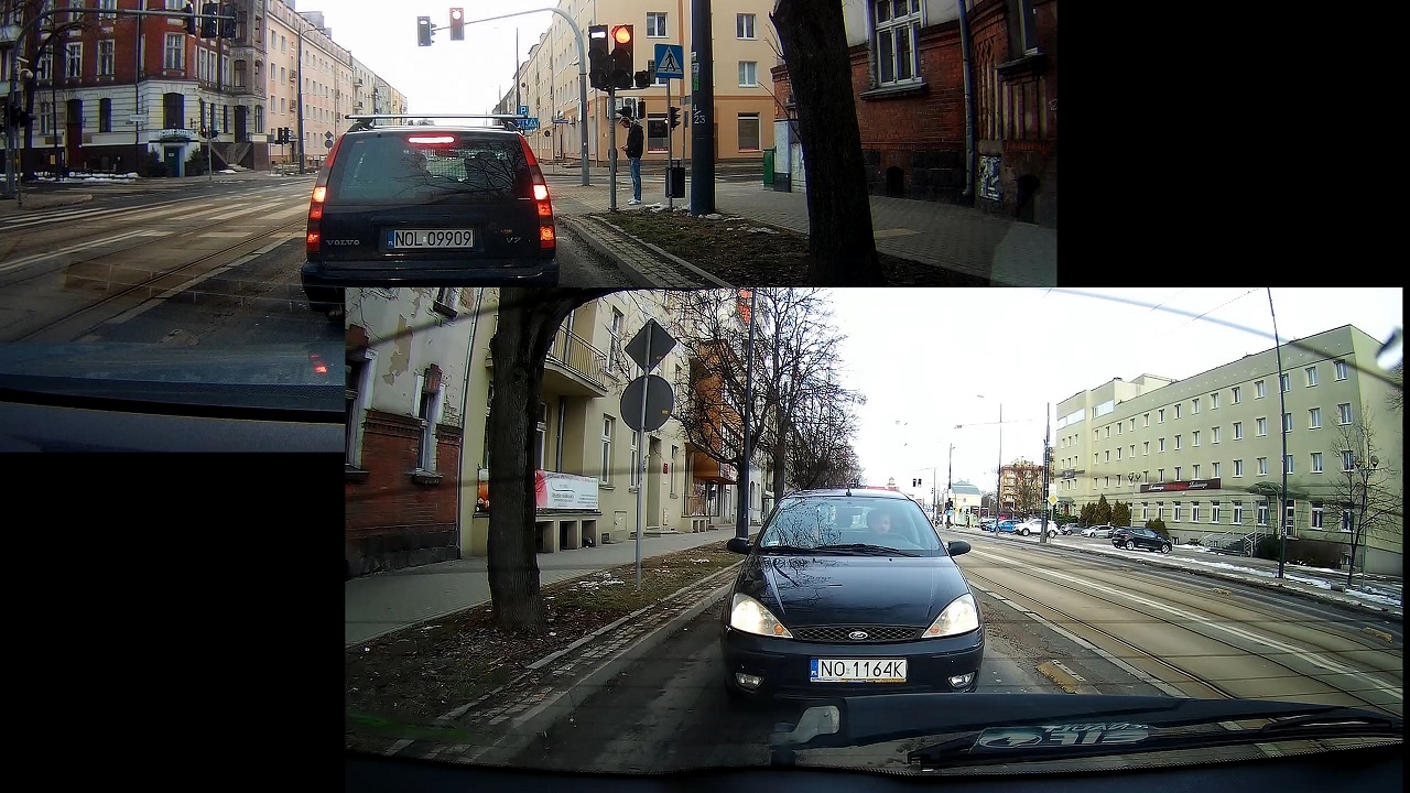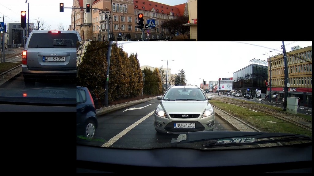 Zamontowałem zatem zarówno z przodu jak i tułu S3 i oto co moge wam pokazac i powiedziec po prawie 2 tygodniach uzytkowania. Kamera na pewno rejestruje obraz w jakosci dobrej, wiec tablice rejestracyjne beda widoczne z odpowiedniej odleglosci, kolory sa odzworowane dobrze, ale nic ponadto. Nie oczekujcie zatem ze dostaniecie bardzo czysty, klarowny i ostry obraz nawet jadac w sloneczny dzien i to nawet na ustawieniach QHD, tutaj kamera z dobrym sensorem i FullHD będzie generowała lepszy obraz. Natomiast pamietajcie ze tutaj w cenie macie jeszcze extra druga kamere ktorą podwieszacie na tylniej szybie. Jak widzicie, w lekko zachmurzony dzien na prawde daje rade i spokojnie mozna odczytac tablice czy nawet przyjzec sie kierowcom czy pasazerom. Myslalem ze obraz z tylniej kamerki bedzie slabej jakosci, jednak sie mylilem i jest tak samo w porzadku jak to co mamy na przedniej szybie. A Jak ta czarna skrzynka nagrywa nocą, no coz.. zle, jezeli nie mamy zadnych swiatel i jedziemy nocą, ziarno jest bardzo widoczne. Nocą w miescie gdzie mamy duzo lamp, neonow i innych sztucznych swiatel jest lepiej – ale nadaj slabo. Tutaj musicie ten aspekt wziac pod uwage kupujac ta kamere.