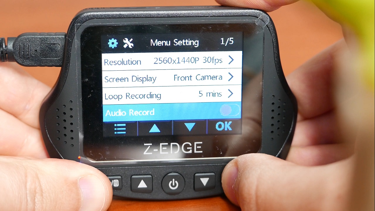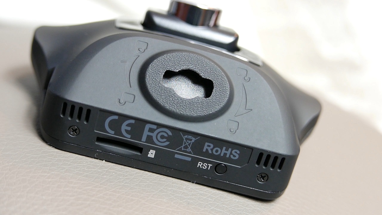 Z tylu znalazl sie prawie 2.5 calowy ekran który jest wyrazny nawet w umiarkowanym słoncu, a podczas nagrywania po przyduszeniu okej mamy mozliwosc zapisania danego zdarzenia by te nigdy nam sie nie usunelo i nie nadpisalo, mozemy przjesc w tryb foto, wlaczyc i wylaczyc mikrofon albo po prostu wylaczyc nagrywanie. Samo menu z opcjami ktore tutaj mamy jest banalnie proste w poruszaniu sie po nim i mamy tu wszystkie standardowe opcje wideo rejestratorów. Czyli mozemy zmienic rozdzielczlosc, przelaczyc czy ma nagrywac jedna czy dwie kamery, ustawić petle nagrywania i tu mamy maxymlanie 5minut, jest szansa ustawienia expocyji, daty, czasu, czy wylaczenia ekranu by ten nas nie rozpraszal. Domyslnie jest tez wlaczony WDR i nigdy go nie wylczajcie. Co ciekawe kamera moze nam przypomniec ze juz jedziemy 2 czy 5godzin i czas na przerwe, kamera z racji posiadania detektora ruchu i tryby parkingowego moze automatycznie sie wlaczyc by jakies zdarzenie zarejstrować. Mamy zatem wszystko to co od takiego urzadzenia bysmy oczekiwali.